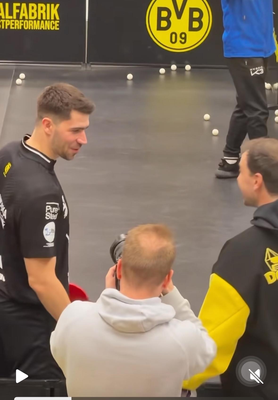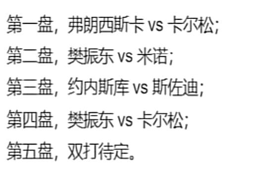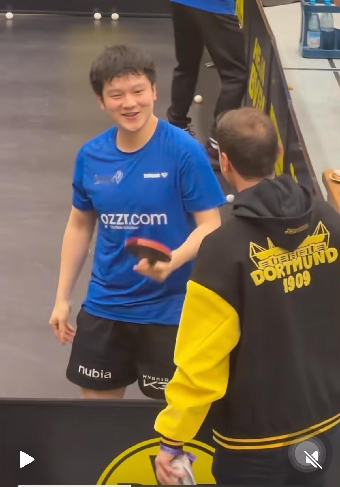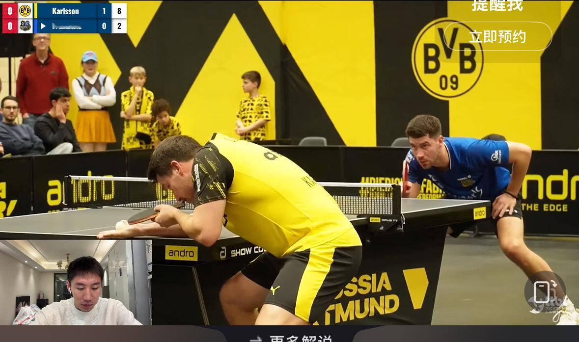 2026樊振东德甲第一战——樊振东3:0米诺 开门红啦 第一盘弗朗西斯卡输给大舅哥卡尔松 1月13日凌晨两点, 萨尔布吕肯到客场多特蒙德打客场, 第一盘 弗朗西斯卡0:3卡尔松 8:11,8:11,8:11 第二盘 樊振东VS米诺 11:4,11:9,11:5 弗朗西斯卡输给了大舅哥卡尔松, 这也不奇怪, 每个俱乐部的球台不一样, 这是多特蒙德的主场, 萨尔到这打客场, 多特蒙德俱乐部的经理非常兴奋, 突然的观众爆满, 措手不及啊! 大舅哥真的不给妹夫面子啊…… 多特蒙德俱乐部的代言人 波尔也来到现场, 赛前与樊振东 弗朗西斯卡 亲切的交谈! 遗憾的前方信号不好! 为什么网络瘫痪? 转播的平台太多了吧! 还好修好了! 恭喜樊振东又是零封对手, 今天的观众席站票真多啊!