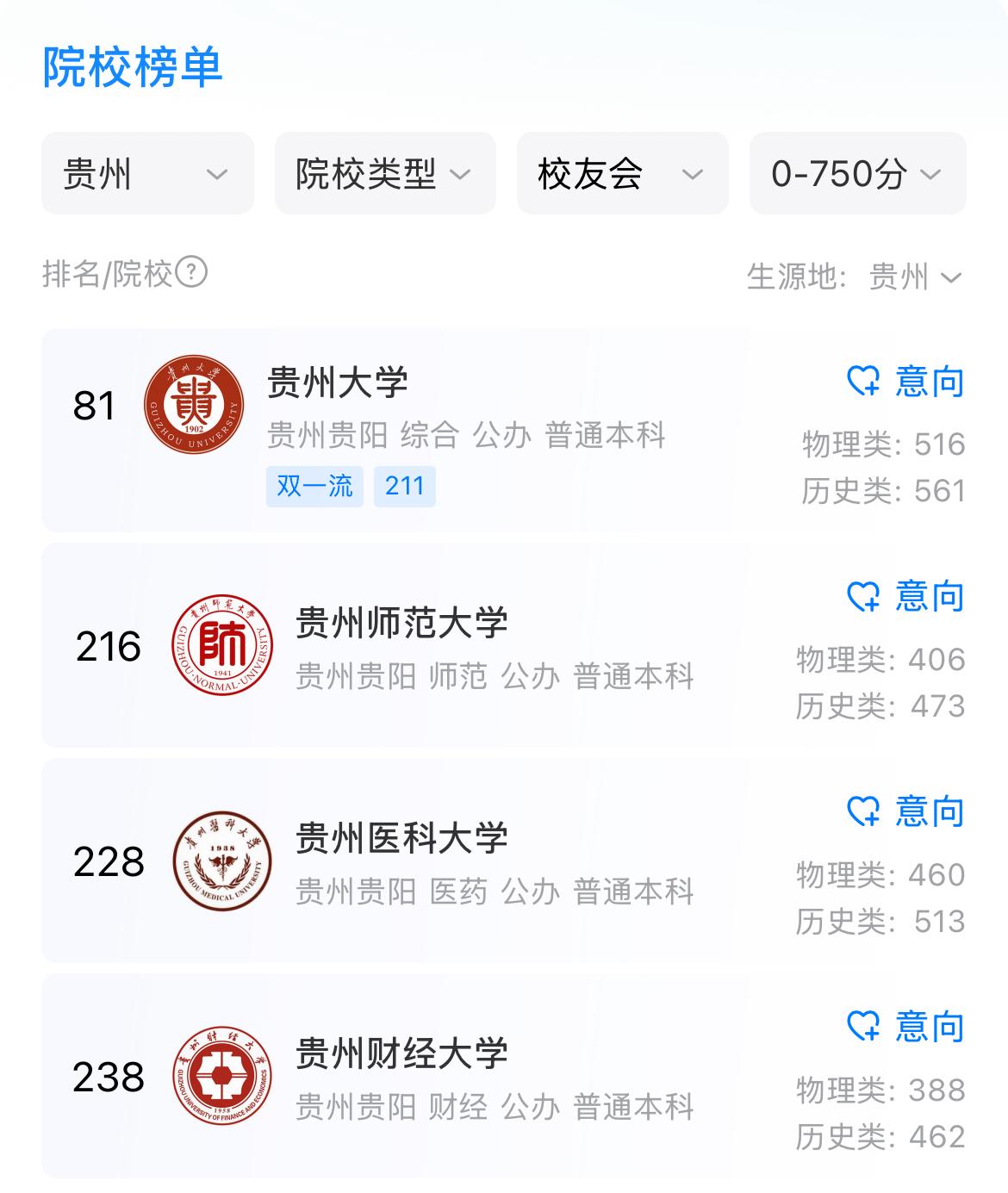 贵州省下一个进入双一流的高校会是谁? 贵州省的高校也不少,最厉害的是贵州大学,全国排名第81位,目前它是双一流高校。 第三轮双一流建设高校向西部倾斜,贵州有望在添一所双一流高校。按照目前的排名,排在省内第二的是贵州师范大学,排在第三的是贵州医科大学、第四的是贵州财经大学。 个人认为最有希望入选的应该是贵州财经大学,因为它培养的是应用型人才,要发展经济,就要重点支持财经院校。至于师大和医科大我觉得可能性不大,原因是师范类双一流高校太多了,医科大学整体实力又相对不强。不知道大家怎么看。