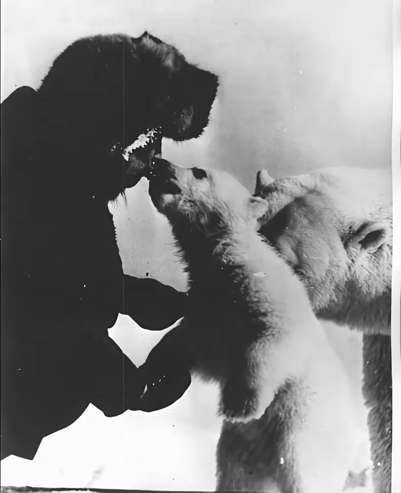 当年,苏联士兵与北极熊和谐共处。那些难寻食物、没了食物的北极熊,得到了士兵充满爱心的援助,它们与士兵们宛如一家人。由此可见,动物也知晓友好往来之道。