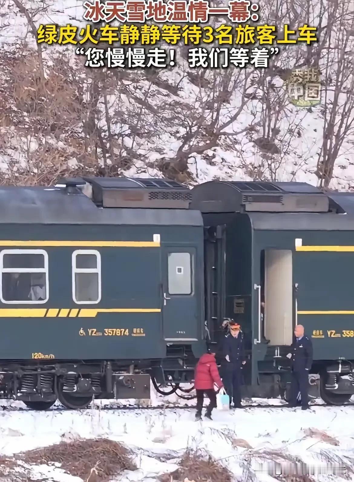看着就想哭!”吉林,一趟绿皮火车在冰天雪地里,硬生生停在荒凉的乘降所,等着3个人慢慢走上来,画面一出来,很多人瞬间破防了,网友直呼:这才是最暖的中国速度! 这趟让无数人动容的列车,是国铁沈阳局开行的4245次公益慢火车,每天清晨6点22分从通化站始发,朝着长白山站的方向缓缓前行,285公里的路程要走近6个小时,平均时速不足50公里 。 它停靠的青沟子乘降所,没有像样的站台,没有遮风挡雨的候车棚,只有两根孤零零的站牌立在雪地里,却成了沿线山民与外界连通的重要枢纽 。 那天被等待的3个人里,有背着孙子的76岁老奶奶王秀兰,有提着满筐山货的村民李铁柱,还有要去县城上学的12岁小姑娘陈雨桐,他们的身影在白雪皑皑的旷野里,构成了最动人的民生图景。 王秀兰奶奶的家在附近的深山里,儿子儿媳在外打工,她独自带着孙子生活。每隔半个月,她都要坐这趟车去县城给孙子拿慢性病的药,“山里路滑,冬天大雪封山,走路到乘降所都要半个多小时,每次都怕赶不上火车”。 可她从来没失望过,列车长张建军早就摸清了老人的出行规律,每次到青沟子乘降所,都会提前让司机放慢车速,自己带着乘务员下车等候。 那天老人的棉鞋沾了雪,脚步格外迟缓,张建军二话不说背起孩子,乘务员则搀扶着老人,一步步踏上铺着防滑垫的车门踏板,车厢里早已备好温热的开水,还有其他乘客主动让出的靠窗座位。 李铁柱的筐里装着刚采摘的松子和山野菜,这是他一家人半个月的收入来源。“这趟车票价才8块钱,比坐面包车便宜一半还多,而且能直接开到县城菜市场门口”,他一边擦着筐上的雪,一边说。 绿皮火车的车厢里,专门预留了放置货物的区域,乘务员还会帮忙加固行李,防止路途颠簸损坏。 对沿线村民来说,这趟车不仅是交通工具,更是“致富车”,山里的土特产靠着它走进城市,城里的日用品、药品也跟着它回到山村,维系着深山与城镇的物质流转。 12岁的陈雨桐是这趟车的常客,父母在县城打工,她跟着爷爷奶奶在村里生活,每周五放学后都要坐火车去县城团聚。“列车员阿姨都认识我,会提醒我写作业,还会给我留热饭”,小姑娘腼腆地说。 遇到暴雪天气,山路难行,列车员会提前联系村里的小学,确认孩子们的出发时间,然后跟司机沟通,适当延长停靠时间。 这趟慢火车上,有专门为学生准备的临时学习角,有乘务员自费购买的课外书籍,还有常备的感冒药、创可贴,这些细微的关怀,让独自出行的孩子和家长都格外安心。 青沟子乘降所没有信号,没有站台,甚至没有工作人员值守,却被4245次列车坚守了18年。负责维护这个乘降所的通化车务段工作人员翟庆胜说:“只要有旅客需要,哪怕只有一个人,我们都会停,这是慢火车的承诺” 。 在高铁时速轻松突破350公里的今天,这趟平均时速不足50公里的绿皮火车,显得格外“笨拙”,但它却覆盖了高铁无法触及的偏远角落,解决了沿线近千名村民的出行难题。 车厢里没有豪华的设施,却有最贴心的服务;没有快速的旅程,却有最温暖的陪伴。 这趟慢火车的坚守,不是个例。在全国范围内,还有81条这样的公益慢火车线路,它们穿行在大山深处、革命老区、偏远乡村,每年运送旅客超过1000万人次。 从山西太行山深处的8171次列车,到四川大凉山里的5633次列车,再到青藏铁路上海拔4721米的雁石坪乘降所,这些慢火车票价低廉,最低仅2元,却承载着最厚重的民生期盼 。 它们或许盈利微薄,甚至需要铁路部门补贴运营,但却用“慢速度”撑起了“大民生”,让每个群体都能共享交通发展的成果。 网友的评论道出了大家的心声:“高铁快,拉近了城市的距离;慢火车暖,填满了民生的温度”“这才是真正的中国速度,不是一味追求快,而是不让任何人掉队”。 在效率优先的时代,我们习惯了高铁的风驰电掣,习惯了即时送达的便捷,却容易忽略那些被高速发展遗忘的角落。 而这些绿皮火车的存在,恰恰体现了中国发展的包容性——我们既要让一部分人先富起来,也要不让一个人落下;既要追求经济的高速增长,也要守护民生的底线温度。 列车缓缓驶离青沟子乘降所,车轮碾过积雪覆盖的铁轨,发出“咔嗒咔嗒”的声响。车厢里,王秀兰奶奶正给孙子喂着热水,李铁柱在整理着山货,陈雨桐趴在小桌上写作业,乘务员在车厢里来回巡视,提醒大家注意保暖。 窗外是银装素裹的群山,窗内是暖意融融的人间,这一幕,正是中国发展最动人的写照。 真正的强大,从来不是只顾着向前奔跑,而是在奔跑的同时,不忘回头拉起那些步履蹒跚的人。 这趟冰天雪地里的慢火车,用18年的坚守告诉我们,所谓“中国速度”,既有高铁飞驰的激情,更有慢火车等候的温情;既有经济腾飞的豪迈,更有民生为本的笃定。 它让我们相信,无论时代发展多快,那些藏在细节里的人文关怀,永远是最能打动人心的力量。各位读者你们怎么看?欢迎在评论区讨论。
