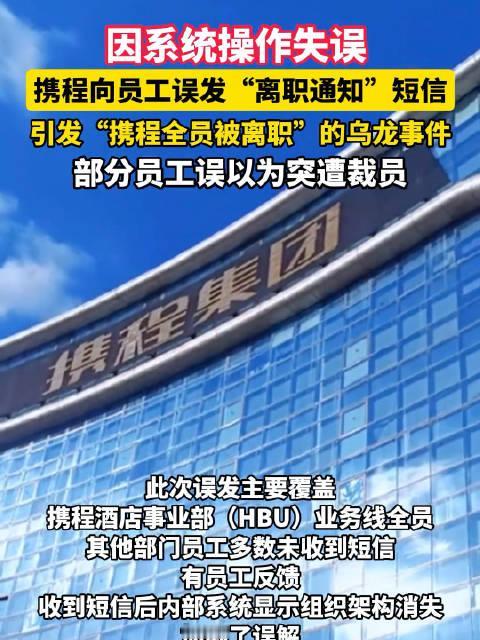 携程误发离职通知:一场乌龙,戳穿多少职场真相 携程全员离职乌龙太荒诞 一条短信,让数百名携程员工体验了“惊魂两小时”。“感谢一路相伴”的离职话术突然轰炸手机,搭配内部系统组织架构消失的诡异现象,任谁都会瞬间脑补“被裁员”的剧本。 这场闹剧的真相——系统迁移时HR未禁用离职短信模板的操作失误,看似偶然,实则暴露了大厂管理的致命漏洞。 号称日访问量过亿的核心办公平台,竟拦不住一条敏感短信的误发?关键操作仅靠二级部门HR独立执行,连基本的复核机制都没有? 更讽刺的是,公司一边推行“居家办公自由”的人性化福利,一边在关乎员工安全感的细节上形同虚设。 乌龙背后,是职场人的集体焦虑。超60%互联网从业者担忧职业稳定性的当下,一条误发的离职通知就能引发全网恐慌,本质是就业市场不确定性的投射 。携程的致歉和涉事HR的带薪休假,终究掩盖不了流程缺失的硬伤。别把管理疏漏当“乌龙”,员工的信任,经不起这样的草率消耗! 携程