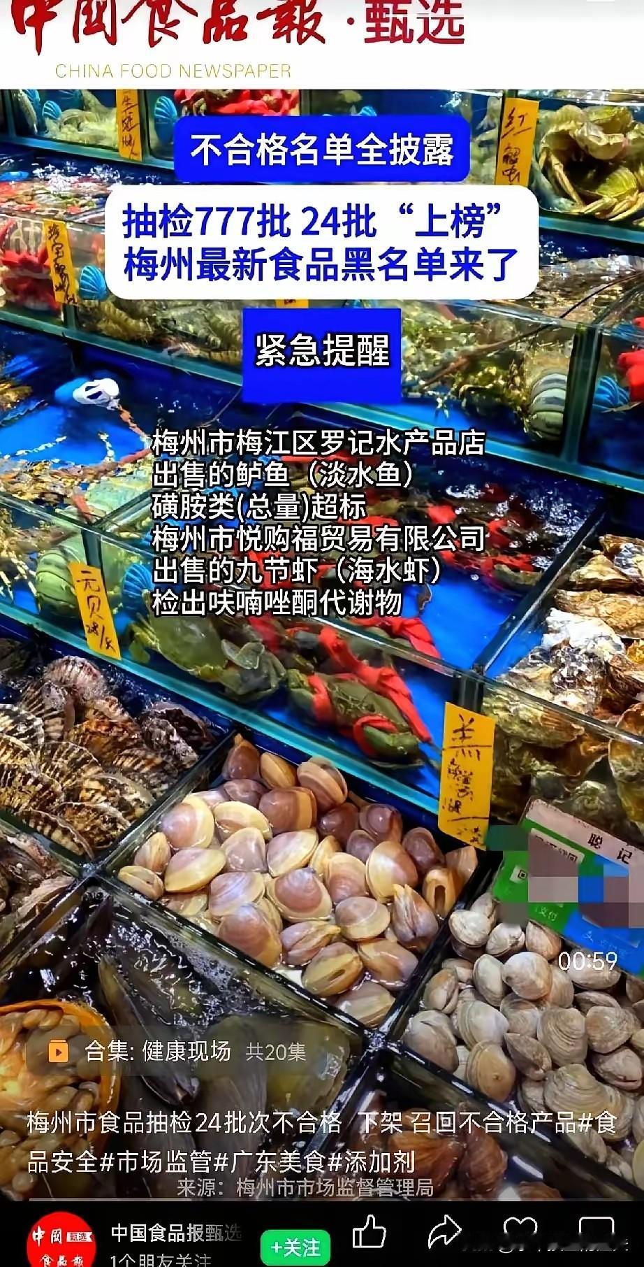 看到梅州这次发布的通报,第一反应不是欣慰,而是后背发凉。 鲈鱼、九节虾、白馒头、白切鸡……哪一样不是老百姓餐桌上的常客? 这些每天端上饭桌的食材,本该是烟火气里的安心滋味,却在抽检报告里露出了狰狞的面目。 梅州2024年第二期食品抽检通报里明明白白写着,兴宁、五华、平远等多地超市和海鲜店的鲈鱼,检出恩诺沙星、磺胺类等超标农兽药 。 而隔壁广州抽检的九节虾,更是查出了呋喃唑酮代谢物——这种物质早就被列入食品动物禁用清单,对人体有潜在危害,却被不法商家悄悄用在了保鲜环节 。 家住梅州梅江区的陈阿姨,看完通报后赶紧把冰箱里的鲈鱼扔进了垃圾桶。“我孙子最爱吃清蒸鲈鱼,每周都要买两三次,一直以为超市的东西放心,没想到……”陈阿姨的声音里带着后怕,她翻出手机里的购物小票,正是通报中提到的某连锁超市分店。 更让她揪心的是白切鸡,儿子儿媳周末回家聚餐必点的菜,却在广东另一批抽检中查出菌落总数超标,而菌落总数超标意味着食材可能受到粪便、污水等污染,吃了容易引发肠胃炎。 这些不合格项目绝非小事。恩诺沙星作为人工合成抗生素,长期摄入会破坏人体肠道菌群平衡,对儿童的骨骼发育也可能造成影响;磺胺类药物则可能让部分人产生过敏反应,严重时危及生命 。 而九节虾里的呋喃唑酮代谢物,更是被明确禁止在食用动物中使用,商家为了让虾看起来新鲜饱满,竟然无视食品安全红线,这种行为比污染本身更让人寒心 。 更让人不安的是,这些问题食材并非来自偏远小作坊,而是遍布正规超市、连锁餐饮和农贸市场。 梅州平远县的百盛佳商贸有限公司,作为当地规模不小的超市,两次抽检都查出鲈鱼磺胺类超标;五华县的阿容家鱼海鲜店,更是同时检出两种违规农兽药 。 这说明问题不是个例,而是可能存在于采购、养殖、运输等多个环节的系统性漏洞。 养殖户为了减少鱼虾患病损耗,违规超量使用抗生素;商家为了延长保质期、提升卖相,默许不合格食材上架;甚至有些经营者明明查验了供货方的检测报告,却对明显异常的指标视而不见。 广州鹿鸣酒家销售的不合格九节虾,虽然商家提供了进货票据和检测报告,但最终还是因呋喃唑酮代谢物超标被处罚,这背后暴露的是部分商家对食品安全的漠视 。 好在监管部门没有缺位,梅州市场监管局在抽检后立即责令相关商家下架召回不合格产品,查清流向并整改,广东各地也对违规经营者处以罚款、没收违法所得等处罚 。 但消费者的安全感,不能只靠事后抽检和处罚来重建。我们去菜市场买菜,没法随身携带检测仪器;在餐馆吃饭,也不可能提前查验每样食材的合格证明,这种信息不对称让老百姓只能被动承受风险。 网友的评论说出了大家的心声:“不是不想信任,是这些商家一次次刷新底线”“食品安全就该零容忍,毕竟没人能不吃东西”。 确实,柴米油盐的安全,是最基本的民生底线。鲈鱼要鲜,九节虾要肥,白切鸡要嫩,但这些前提都必须是“安全”二字。没有安全的食材,再鲜美的滋味也只是毒药的包装。 监管部门的抽检通报,既是预警也是提醒。它告诉我们,食品安全永远不能掉以轻心,也督促着相关部门要加大抽检频次,拓宽抽检范围,让不法商家无处遁形。 而作为消费者,我们也要学会查看抽检信息,通过正规渠道购买食材,遇到可疑情况及时拨打12315投诉举报。 民以食为天,食以安为先。当鲈鱼、九节虾这些家常菜,不再让人担心农兽药超标;当白切鸡、白馒头这些日常主食,能让人放心入口,这份烟火气才真正有了温度。 希望这次的通报能成为一记警钟,敲醒那些心存侥幸的经营者,也推动监管防线再收紧一些,让老百姓的餐桌,真正成为安心的港湾。各位读者你们怎么看?欢迎在评论区讨论。