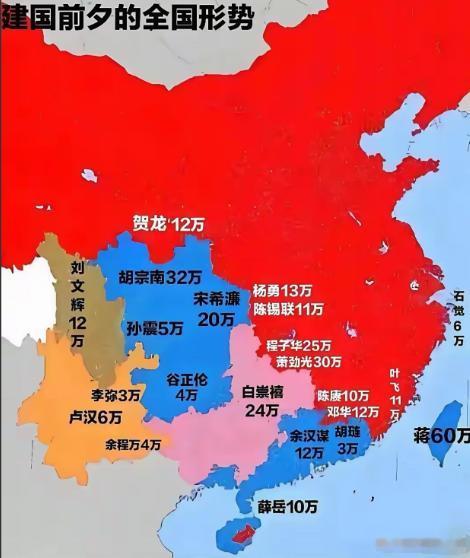 一直以为1949年开国大典后,全中国就都解放了,直到刷到相关史料才知道,当时西藏、云南、四川等八个省份还在国民党控制下,残留的军队居然有130多万! 这些军队不是零散的散兵游勇,是有组织的割据势力,蒋介石把西南当成最后据点,让胡宗南带着几十万兵力守四川,依托秦岭、大巴山的天险筑防线,白崇禧的部队盘踞广西,靠着丘陵地带跟解放军周旋,海南有薛岳的驻军,还修了所谓的“伯陵防线”。 开国大典上,朱德总司令就下了命令,要求解放军迅速肃清残敌,解放所有没解放的国土,说白了就是,建国只是第一步,把全国领土都解放,才算完成统一大业。 解放军采取的是大迂回、大包围的打法,不跟敌人正面硬拼防线,而是绕到他们后方切断退路,逼着敌人不得不交战,这种打法避免了把敌人赶到偏远山区或逃到境外。 1949年11月,解放军正式发起西南战役,第二野战军主力从湘西进入贵州,接着直插川南,先断了敌人往云南、西康逃跑的路,同时另一路进攻川东,合围重庆。 蒋介石当时还在重庆督战,见势不妙,连夜坐飞机逃去了成都,后来又逃往台湾,11月30日,重庆解放。 军事打击的同时,政治争取也在推进,云南的卢汉、西康的刘文辉等地方势力,看清局势后先后起义,到12月,成都被合围,胡宗南集团被歼灭,西南除了西藏都解放了。 华南战场也同步推进,第四野战军发起广西战役,歼灭了白崇禧集团,解放广西全境,广东战役后,广州顺利解放,国民党残余政府被迫迁到重庆。 1950年4月,解放军渡海进攻海南,在琼崖纵队的接应下,突破敌军防线,5月1日全岛解放,舟山群岛随后也被解放,打破了国民党对长江口的封锁。 最后剩下的西藏,情况更特殊,帝国主义势力插手,西藏地方当局里的顽固派还策划“独立”,扩充军队购置军火,解放军一边准备进军,一边争取和平谈判,1950年10月,昌都战役打响,打通了进藏的门户,西藏爱国力量逐渐壮大。 1951年5月23日,《中央人民政府与西藏地方政府关于和平解放西藏办法的协议》正式签署,10月,解放军进驻拉萨,西藏和平解放,至此,中国大陆才算真正实现全境解放。 原来我们熟知的建国,背后还有这么一场持续两年多的解放征程,那些穿梭在崇山峻岭的解放军,用征战换来了全国的统一和稳定。 以上是小编个人看法,如果您也认同,麻烦点赞支持!有更好的见解也欢迎在评论区留言,方便大家一同探讨。