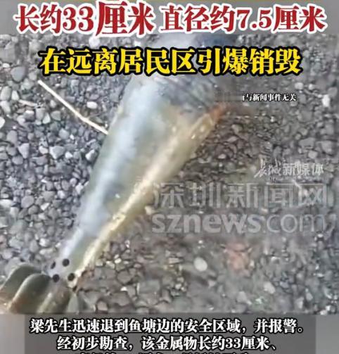 “简直后怕!”近日,江西吉安,一男子在清理自家鱼塘时,突然挖出一块坚硬金属物,表面布满淤泥,但观察其形状特别像影视剧中的炮弹,吓得他立即报警并撤到安全区域等待,专家鉴定后表示,确是二战遗留炮弹。网友:还好没炸! 鱼塘清淤是为了清理塘底堆积的淤泥、杂物,改善水体环境和水质,让鱼类更好地生长,本是日常的农作活儿,可江西吉安的梁先生却在给自家鱼塘清淤的过程中,挖出了一件让人脊背发凉的东西。 据媒体1月12日报道,这天梁先生趁着空闲便给自家鱼塘清淤。就在他用工具清理塘底淤泥时,突然碰到一个坚硬的异物,起初以为是石头,可扒开淤泥后,发现竟是一个裹满泥浆、锈迹斑斑的长条状金属物,仔细一看感觉外形和影视剧中的炮弹极为相似。 梁先生心里顿时咯噔一下,意识到这东西可能是个危险物,不敢有丝毫触碰,随后立刻拨打了报警电话。经专家鉴定,确认这是一枚二战时期遗留的未爆弹,长约33厘米,直径约7.5厘米,虽历经多年锈蚀,但仍存在爆炸风险。 为了确保周边居民的安全,警方随后将这枚未爆弹小心转移到远离居民区的空旷地带,最终对其实施了引爆销毁处理。 网友看完纷纷表示“隔着屏幕都觉得后怕,幸好梁先生警惕性高没乱碰”,还有人调侃“以为是‘宝藏’,没想到竟是颗未爆弹”,也有网友感慨“和平年代还能见到二战遗留物,更要珍惜当下的安稳”。 信息来源:《[男子在自家鱼塘清淤,发现二战遗留未爆弹]》深圳新闻网