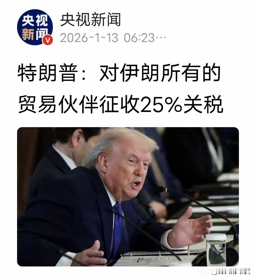 特朗普与五角大楼的将军们商量一宿,最终还是没有选军事打击。 特朗普终于出手了,宣布将对任何与伊朗有业务往来的国家征收25%的全面关税。 这个方式与外界预期差距较大。 西方媒体做了大量铺垫,渲染伊朗警察杀害大量群众的新闻,期待的自然是美国军事干预。 但他们不了解美国的苦恼,美国对打击伊朗也很头疼。 首先伊朗不是丹麦、巴拿马那种弱小国家,有很强大的军事实力 。 在上一次导弹袭击中,伊朗就曾经发射导弹打击周边的美军基地(虽然没死人)。 其次伊朗特殊地理条件可以反制美国 伊朗扼守波斯湾出口,多次扣押油轮报复美国,美国并没有什么好的反击办法。 昨天特朗普召集军方开会一晚上,披萨吃了不少,但办法没想出多少。 另外据《华尔街日报》报道,美国副总统万斯建议特朗普先尝试外交,再决定是否发动打击。 特朗普最终放弃军事干预,选择相对了经济制裁。 其实简单分析就发现加关税也很难落地。 因为伊朗贸易伙伴名单大部分都是刺头。 根据伊朗2025年贸易额来看,前五名分别为中国、阿联酋、伊拉克、土耳其、印度(后边还有俄罗斯、欧盟等)。 中国跟美国打了几个月贸易战刚刚休战。印度正在跟美国打贸易战。 土耳其一直以大国自居经常批评美国,最近是美国拉拢的对象。 另外特朗普加征关税这个手段用太多次,大家都免疫了。 比如泰国与柬埔寨再次冲突,特朗普拿加关税威胁也没用。 这三个特朗普都搞不定,估计糊弄几天再会找个新热点掩盖过去。 抢占格陵兰的话题就不错。 刺头不好惹,欧洲萌傻、听话、好推倒!