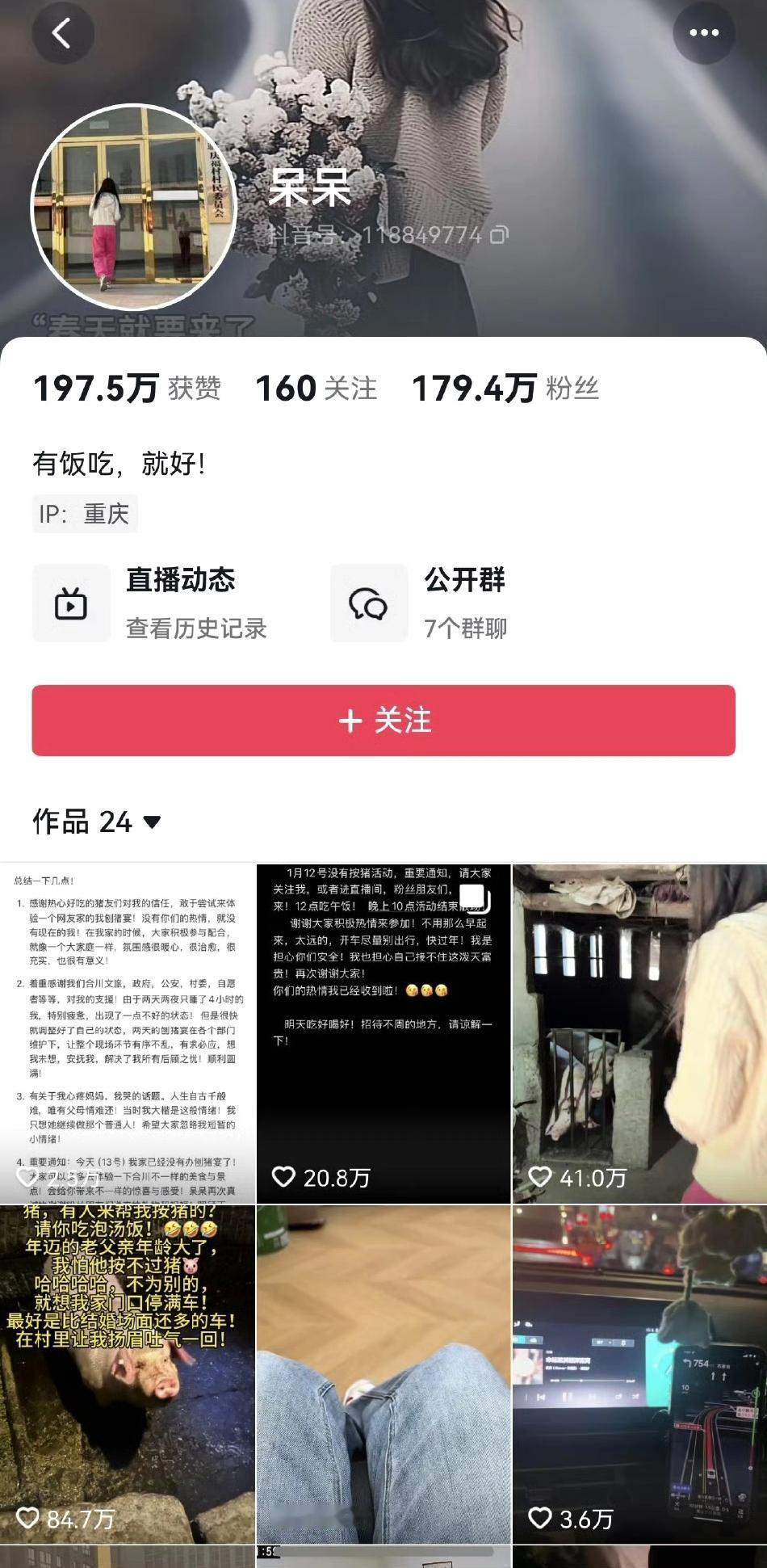 抖音又造神了,合川呆呆几天时间粉丝快破两百万了。 粉丝量坐火箭飙升比鸡排哥猛。 现在鸡排哥的热度下去了。 前段时间也有一个爱吃鸡蛋🥚的博主,热度也下去了。 合川呆呆妹 重庆网红呆呆 重庆呆呆姐 重庆女孩呆呆