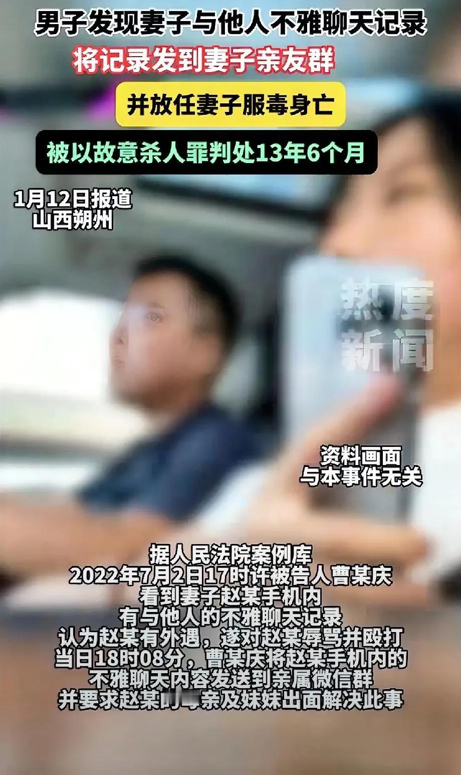 丈夫放任不管获刑13年半 山西朔州一起家庭悲剧引发法律严惩。丈夫曹某庆将妻子隐私照发至亲友群,导致妻子不堪受辱服毒自杀,他竟在明知中毒后不予施救,最终因故意杀人罪获刑十三年半。 此案判决具有三重警示意义: 第一,隐私权是人格尊严底线。夫妻矛盾再大,曝光私密信息进行“羞辱式惩罚”已构成精神暴力,突破了法律与道德双重红线。 第二,“不作为”也是犯罪。发现妻子服毒后放任不管,等同于以冷漠方式剥夺他人生命权,司法机关认定为故意杀人,体现对生命权的刚性保护。 第三,婚姻危机需理性解决。猜疑与报复只会制造悲剧,此案中若能选择沟通或法律途径,本可避免两条人生的毁灭。 判决不仅是对施害者的惩罚,更是向全社会宣告:任何理由都不能成为践踏人格与生命的借口。婚姻不是侵犯权利的庇护所,每个人都要为失控的恶意付出代价。