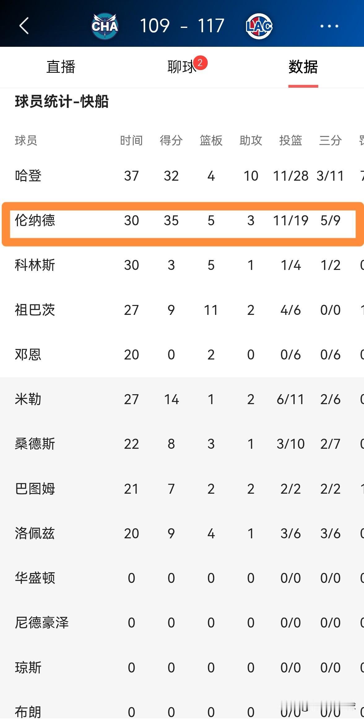 快船超级巨星伦纳德彻底的把我打服了!在今天快船主场以117:109力克黄蜂的比赛中,伦纳德仅仅首发出战30分钟,投篮19中11,其中三分球9中5、罚球9中8非常高效的砍下35分,还有5篮板3助攻,他的场上正负值为+8。 考虑到伦纳德有伤在身,因此他今天的表现更加了不起,总而言之我是被伦纳德彻底的打服了,我对他的得分能力真是佩服的五体投地。