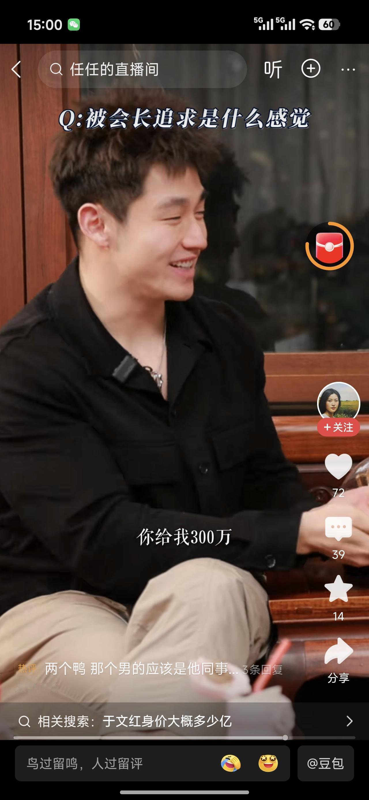 主持人羡慕死了!三百万,在一起。换了自己,估计也痛痛快快答应了。普通人一辈子赚不到三百万。任任点个头钱到账。 不羡慕是假的。但是如果真是富二代,家长不砸断腿才怪。 记得他站在吉田的门口拍视频,也没进去啊!不知是不是真少爷,反正我持怀疑态度。还是山东企业,难不成他是山东人?哎呦,突然难以接受。山东考公大省,竟然也出软饭男。 话说,这小子也瘦了,这碗饭,也吃的不容易啊!