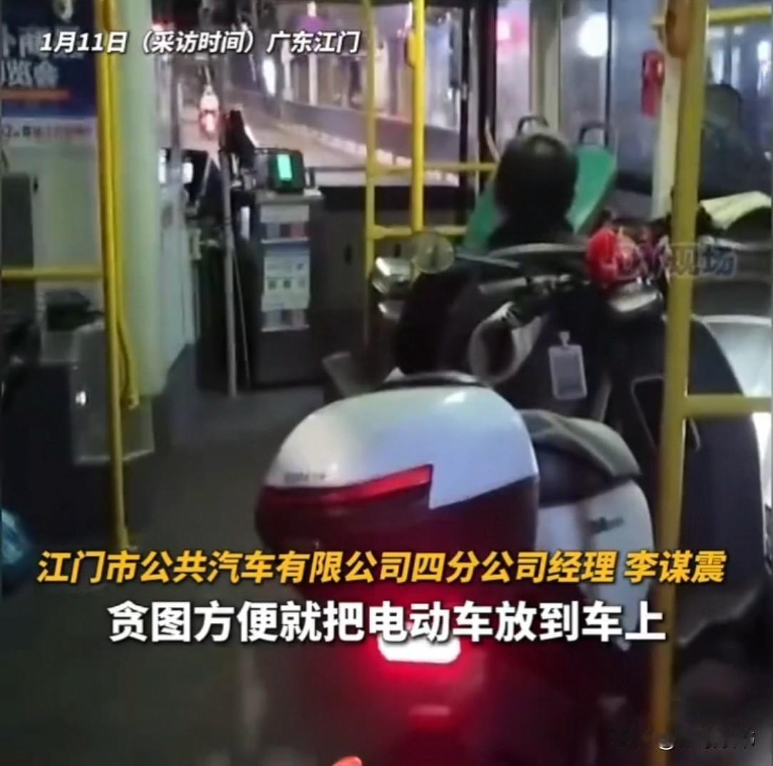广东男子坐公交回家,瞧见车内竟停着电动车,当场火了:“师傅!电动车咋能上车?” 旁边乘客嘀咕:占点地方罢了,犯得着发这么大脾气吗? 1月9号晚上,广东江门一公交站点,1路公交的尾班车“哐当哐当”地驶进站,车还没停稳,站台上的人就开始往前凑。 一个穿黑色外套的小伙子,胳膊夹着个帆布包,仗着腿脚利索,“嗖”地一下就钻到了最前头。 等车门“哗啦”一开,他第一个跳上去,“嘀”的一声刷了卡,脸上还挂着抢到先机的得意笑,心里琢磨着这下能找个舒服的位置歇会儿了。 “哎哟喂!这小伙子怎么回事啊?一点素质都没有!没看到旁边还有老人家吗?” 身后传来一声尖利的嘀咕,说话的是个拎着布袋的大妈,被小伙子挤得一个趔趄,眼神里满是不满,嘴里的抱怨声就没停过,一边嘟囔一边也跟着上了车。 小伙子没工夫搭理她,刚想找个靠窗的位置坐下,目光扫过车厢,脚步“噔”地一下就顿住了。 他的眉头瞬间拧成了个川字,眼睛瞪得溜圆,刚才那点得意劲儿全没了,只见车厢过道正中间,赫然停着一辆银灰色的电动自行车,车把上还挂着个头盔,把本就不宽敞的过道堵了个严严实实。 “师傅!”小伙子的声音陡然拔高,带着一股子压不住的火气,他往前跨了两步,指着那辆电动车,嗓门大得整个车厢都听得见,“电动车怎么能上车啊?这不是明文规定不让带的吗?” 他这一嗓子,把车厢里低头刷手机的乘客都给惊动了,大伙儿纷纷抬起头,目光在小伙子和电动车之间来回打转。 “嗐,多大点事儿啊,不就占了点地方嘛,犯得着发这么大火?”前排一个年轻姑娘撇撇嘴,小声跟旁边的同伴嘀咕,手指还在手机屏幕上划拉着,一脸不以为意的样子。 那拎布袋的大妈本就看小伙子不顺眼,这会儿见他对着司机大呼小叫,更是来了劲,立马跟着帮腔:“就是就是!刚上车我就瞧见这车了,年轻人真是太斤斤计较了!” 她抱着胳膊,下巴扬得老高,那神情仿佛小伙子做了什么十恶不赦的错事。 周围也响起了几声附和的低语,有人说“多一事不如少一事”,有人说“司机肯定有他的道理”。 小伙子听着这些话,气得差点笑出声,指着那辆电动车,“你们一个个在这儿装什么大方!这是锂电池电动车!万一在路上晃悠晃悠挤坏了,短路爆燃了,这一车厢人谁跑得了?到时候你们还能这么大方?” 这话一出,车厢里瞬间安静了不少,刚才嘀咕的几个人脸上都露出了迟疑的神色。 驾驶座上的司机师傅原本正低着头假装看后视镜,听到小伙子这话,肩膀猛地一颤,缓缓抬起头,脸色有些发白,眼神躲躲闪闪的,不敢跟小伙子对视,嘴角动了动,半天没挤出一个字来。 谁也不知道,这辆电动车压根不是乘客的,就是司机师傅自己的。 他想着是尾班车,乘客少,贪图下班回家方便,就顺手把车开进了车厢,哪成想会被人当场逮个正着。此刻他只觉得后背发凉,手心全是冷汗。 小伙子看着司机心虚的模样,心里顿时啥都明白了。 他没再多说一句,掏出手机对着电动车和司机拍了几张照片,下车后立马就拨通了公交公司的投诉电话。 没过多久,公交公司就发布了处理公告,涉事司机被严肃批评教育,还被停岗反思,公司还特意重申了严禁携带电动车及锂电池上车的规定,承诺以后会加强管理,绝不让这种事再发生。 众所周知,市面上很多电瓶车的电瓶用的都是锂电池。 而锂电池一旦受挤压、短路、破损,极易热失控爆燃,高温难扑灭还会释放有毒气体。而封闭拥挤的公交车厢里,一旦出事根本来不及疏散,一车厢人的安危都悬在这小小的电池上。 所以,事关生命安全,我们不妨向黑衣男子学习,有时“斤斤计较”,恰恰是对自己、对他人生命最负责任的表现。