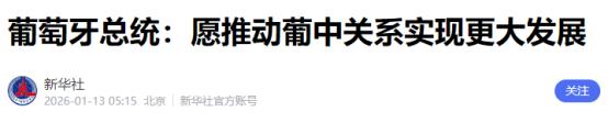 葡萄牙公开喊话中国 当地时间1月12日,葡萄牙总统在首都里斯本公开表示:愿同中方共同努力,推动葡中关系实现更大发展。 这句话背后,藏着葡萄牙对自身发展的清醒认知,更是欧盟对华关系格局里一次实打实的突破。 现在不少西方国家在对华关系上还左右摇摆,有的甚至跟着美国搞阵营对抗,这种大背景下,葡萄牙主动站出来释放友好信号,要推动和中国关系的复苏缓和,加速合作落地,还明确了要在欧盟体系框架内主动经营对华关系。这份务实和果断,确实值得琢磨。 要搞明白葡萄牙为啥这会儿主动喊话中国,得先看清一个基本事实,中葡之间早就有坚实的合作基础,这份友好不是凭空冒出来的。 从1979年建交至今,45年时间里,两国在政治、经贸、文化等各个领域的合作早就扎下了根。就说经贸往来,2024年中葡双边贸易额已经达到92.8亿美元,同比还增长了6.6%,其中中国从葡萄牙进口的增速更是达到8.9%。 中国对葡出口的电机电气设备、机械器具等产品,正好契合葡萄牙的产业需求。葡萄牙的软木及其制品、葡萄酒、橄榄油等特色产品,也早就走进了中国市场,深受中国消费者欢迎。 更关键的是,中国已经成为葡萄牙第五大外资来源国,截至2025年10月,中国在葡直接投资存量超过130亿欧元。 像国家电网收购葡电网公司25%股权、中车唐山为波尔图地铁提供列车和维保服务、中创新航锂电池工厂落地这些项目,早就把两国的经济利益绑在了一起,形成了一荣俱荣的格局。 葡萄牙这次主动喊话,更重要的意义在于“欧盟框架内的突破”。这些年,欧盟内部在对华政策上一直有分歧,有的国家受美国影响,时不时在经贸、技术领域搞些小动作,想给中欧合作设置障碍。 就像前不久闹得沸沸扬扬的欧盟对华电动汽车反补贴案,虽然最后通过磋商实现了“软着陆”,但也能看出欧盟内部对华态度的复杂性。而葡萄牙这次明确表态,要在欧盟体系框架内主动经营对华关系,这相当于在欧盟的对华共识里,打出了“务实合作”的旗帜。 这不仅是对自身利益的坚守,也给其他欧盟国家做了示范。毕竟对欧盟国家来说,中国市场的重要性不用多说,就像爱尔兰总理马丁前不久访华时说的,“脱钩绝非切实可行的考量,世界各国本就相互依存”,葡萄牙显然看透了这一点。 往深了想,葡萄牙的主动示好,也是基于自身发展的迫切需求。葡萄牙是欧盟中等发达国家,纺织、制鞋、酿酒、旅游这些支柱产业,都需要更广阔的市场来支撑。 它的锂储量在欧洲排第一、世界排第八,加上在绿色能源领域的发展需求,正好能和中国的产业优势互补。这些年,中国在新能源、数字经济等领域的技术和产能优势越来越明显,比亚迪、小鹏等中国电动汽车已经进入葡萄牙市场,亨通海底电缆工程等绿色合作项目也顺利落地。 这些合作给葡萄牙带来了实实在在的发展机遇。尤其是现在全球经济复苏乏力,美国还在推行贸易保护主义,中国却在持续扩大高水平对外开放,这对葡萄牙来说就是不可错过的发展机遇。 之前葡萄牙总理蒙特内格罗在2025年9月访华时,和中国签署了5份合作文件,这足以看出葡萄牙对对华合作的重视。这次总统再次公开喊话,更是把这份重视摆到了台面上。 可能有人会问,欧盟内部不是还有不少反华声音吗?葡萄牙这么做不怕被孤立?其实不是这样的,从近期的中欧互动就能看出来,务实合作已经成了主流。 除了中欧电动汽车案的“软着陆”,爱尔兰总理作为2026年首个访华的欧洲国家领导人,也明确表示要推动欧中关系健康发展。而且中葡之间的人文交流早就打下了基础,葡萄牙已经开办了5所孔子学院,中国有40多所高校开设了葡语课程。 2024年中国对葡实行单方面免签政策后,两国人员往来变得更加密切。这些都说明,中欧之间的共同利益远大于分歧,葡萄牙正是抓住了这个核心,才主动迈出了经营对华关系的步伐。 更值得注意的是,葡萄牙的这次表态,也反映出国际格局的微妙变化。随着中国综合国力的提升和国际影响力的扩大,越来越多的国家意识到,和中国搞对抗没有出路,合作共赢才是正确选择。 之前有些欧洲国家跟着美国搞对华封锁限制,最后没占到便宜不说,还影响了自身的经济发展和民生改善。 而葡萄牙一直坚持务实的对华政策,从2005年建立全面战略伙伴关系,到2018年签署共建“一带一路”合作谅解备忘录,再到现在主动推动关系升级,一步步把中葡合作推向深入,也收获了实实在在的利益。这种“以合作谋发展”的模式,无疑给其他国家提供了借鉴。