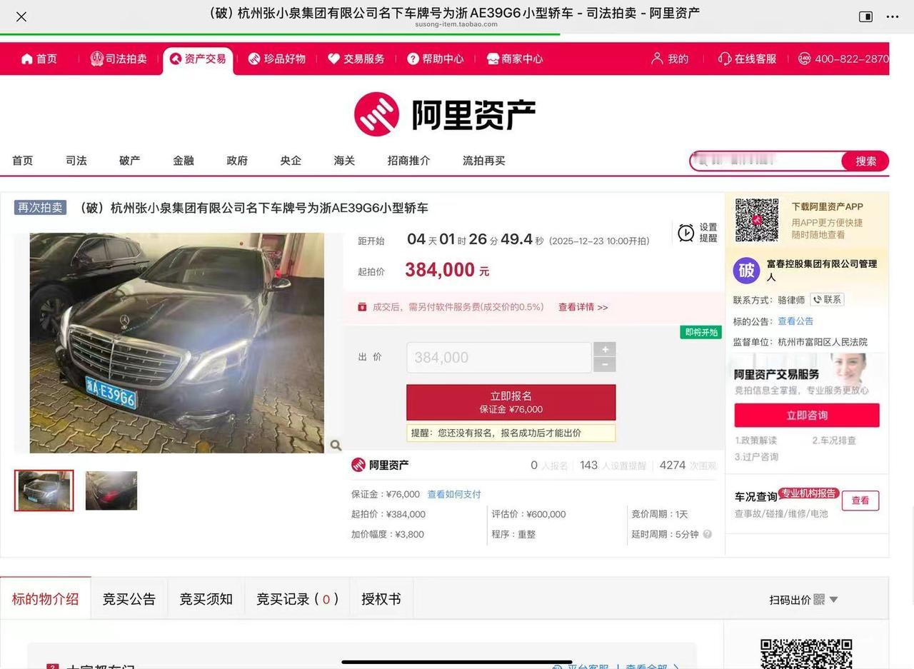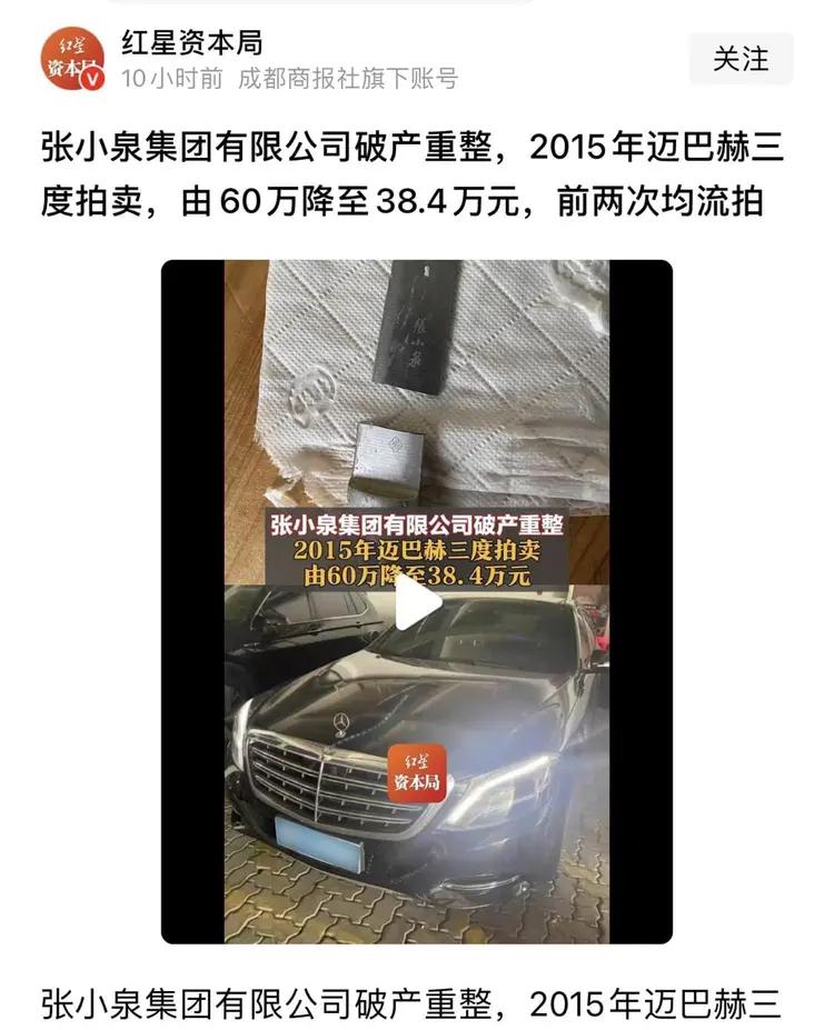 张小泉集团破产重整,百年老字号的冰火两重天,150万元的迈巴赫30.336万贱卖! 1月13日,阿里资产平台的一则成交公告,道尽了百年老字号的兴衰落差:张小泉集团名下的迈巴赫S级轿车,历经四次流拍后终以30.336万元成交。这串数字背后,是令人唏嘘的强烈反差。 曾几何时,这辆2015年登记的迈巴赫是企业风光的象征,当年落地价近150万元,是妥妥的行政级豪车标杆。彼时的张小泉集团正值巅峰,借资本之力完成品牌统一,2021年推动上市公司登陆创业板,首日市值便达46亿元,巅峰时近59亿元,控股方更是实现超20倍的投资增值。豪车驰骋的轨迹,恰是企业扩张野心的缩影。 今时不同往日,风光早已散尽。为清偿债务,这辆迈巴赫沦为法拍品,起拍价从评估价60万元接连腰斩,四次流拍后降至24.576万元才引来竞价。 而这只是冰山一角,其背后的富春系深陷58亿元债务泥潭,69家关联企业被裁定实质合并重整,张小泉集团持有的上市公司股份几乎全被冻结质押。一边是曾经近150万的豪车排面,一边是30余万元贱卖偿债的窘迫;一边是当年资本市场的“刀剪第一股”荣光,一边是如今百亿债务的困局。 30.3万元的成交价,不仅是一辆豪车的贬值,更是企业偏离主业、激进扩张的代价。百年招牌的光环下,是资本游戏留下的疮痍,这场拍卖的冰火两重天,为所有老字号敲响了警钟。