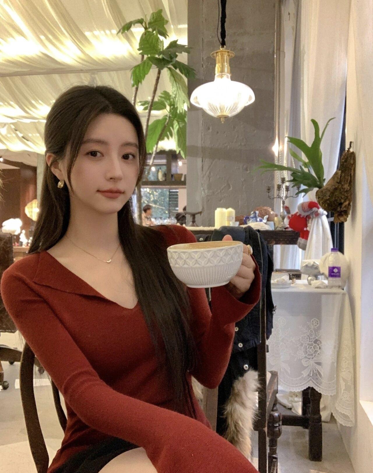 红衫配暖光,慵懒的氛围感拉满~