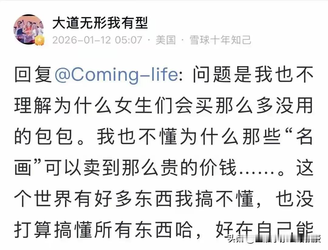 段永平也是实诚,只看得懂买茅台的逻辑,却看不懂女生买包的逻辑,那可能更看不懂买拉