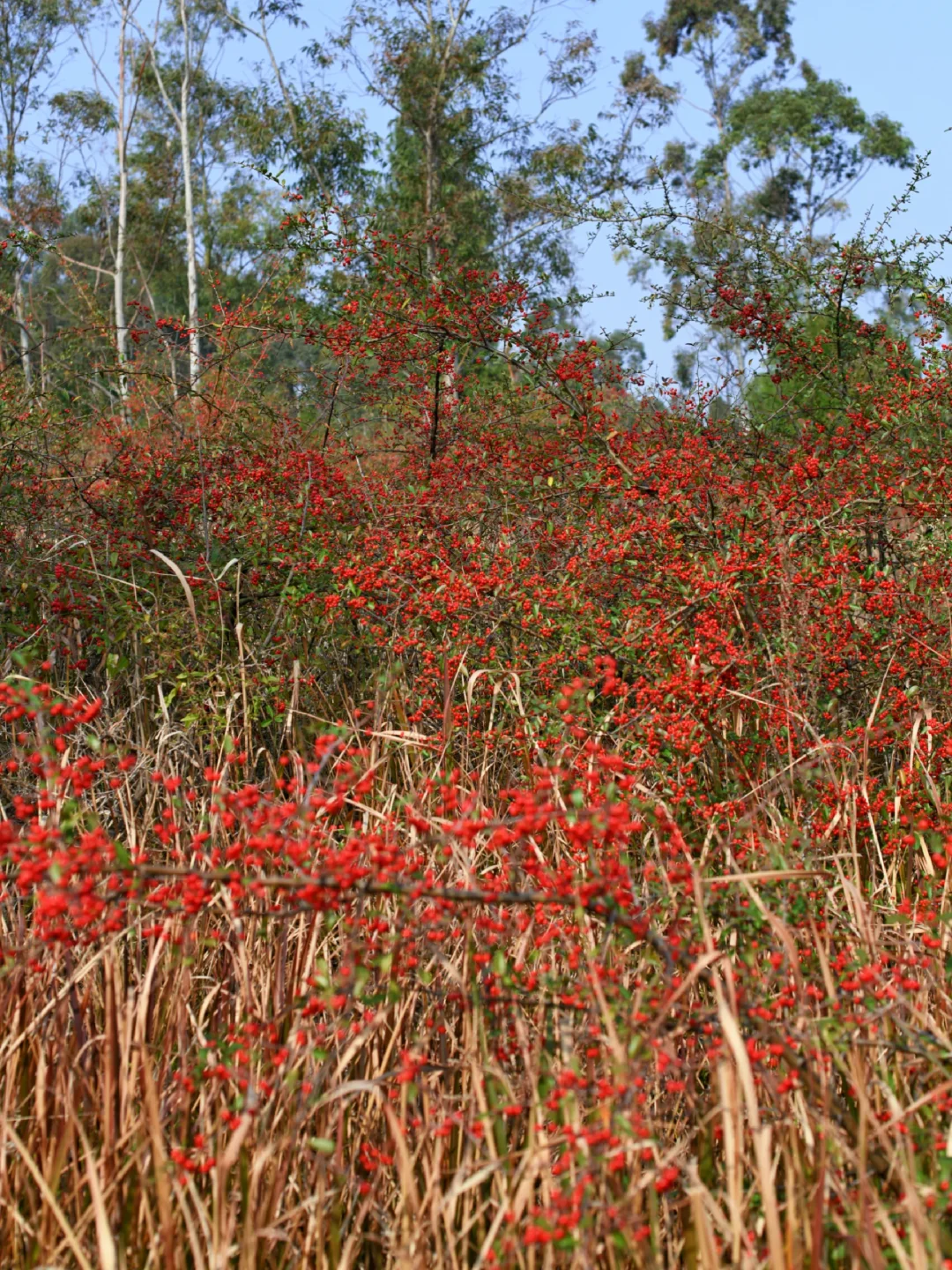 秋冬是最佳观赏期!沿途成片的金黄茅草和山脊上火红的火棘果,在阳光下超耀眼,拍照巨出片。