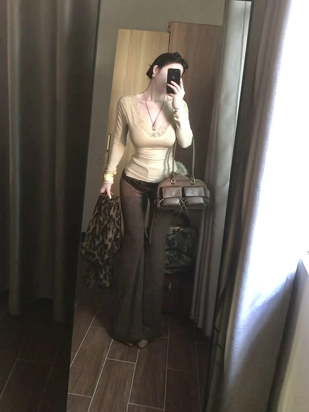 1. 体型:身材高挑,曲线玲珑,整体身形匀称且线条优美,高腰喇叭裤更凸显出腿部与