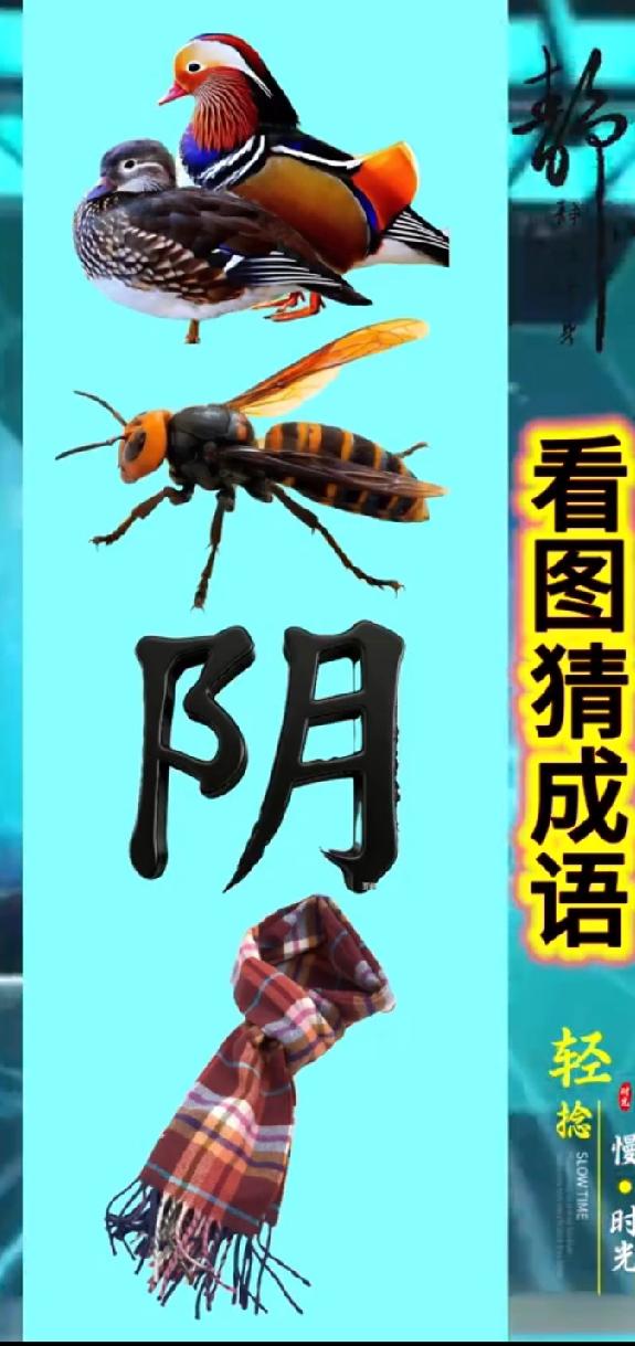 鸳鸯+蜜蜂+阴字+围巾,能组成啥成语?猜对的都是高手,评论区秀出你的答案!