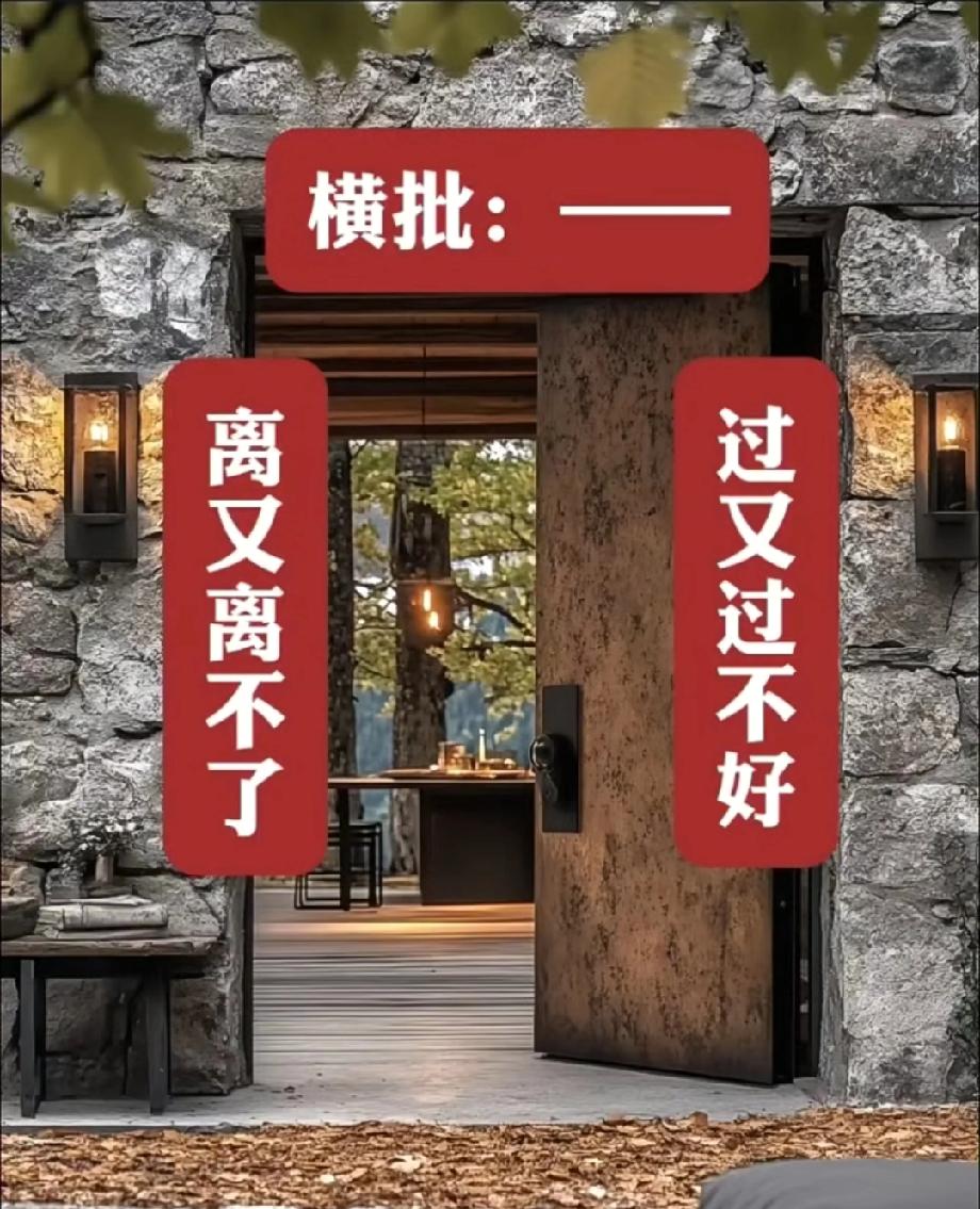 扎心了!“离又离不了,过又过不好”,这副对联的横批你想到了吗?评论区见