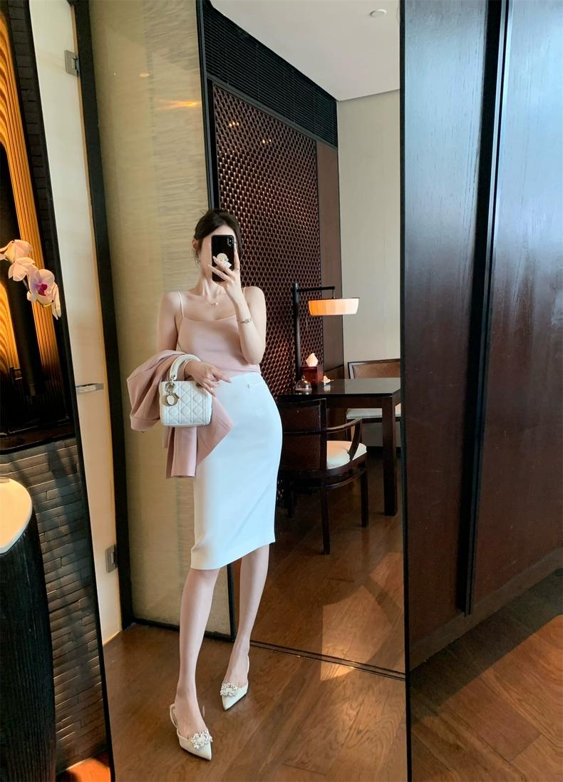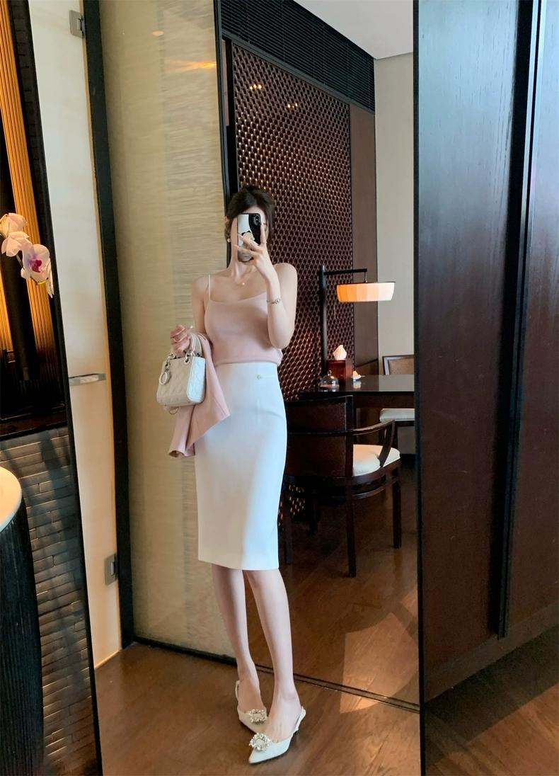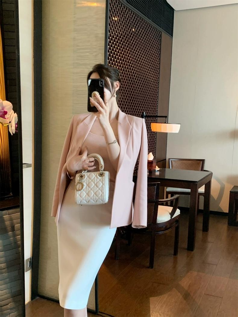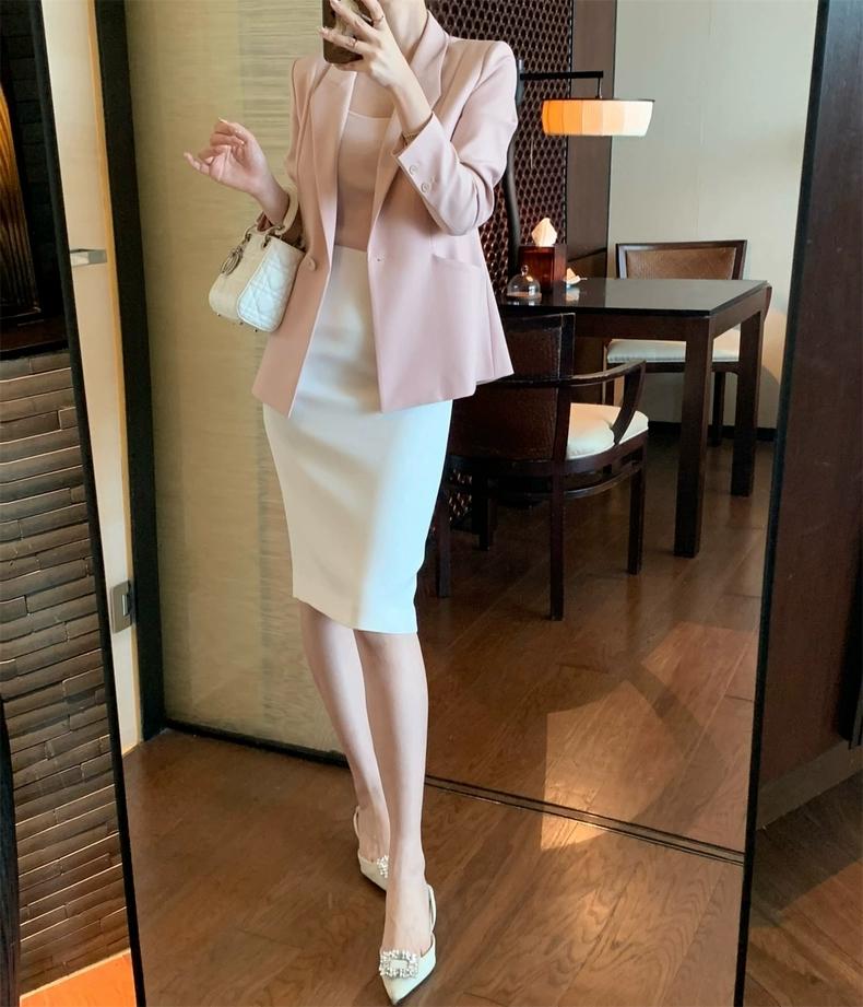 《红标办公室搭配肌理感醋酸包臀半裙套装》美到美爆!职场包臀裙穿搭 职场套装裙 醋酸缎面裙穿搭