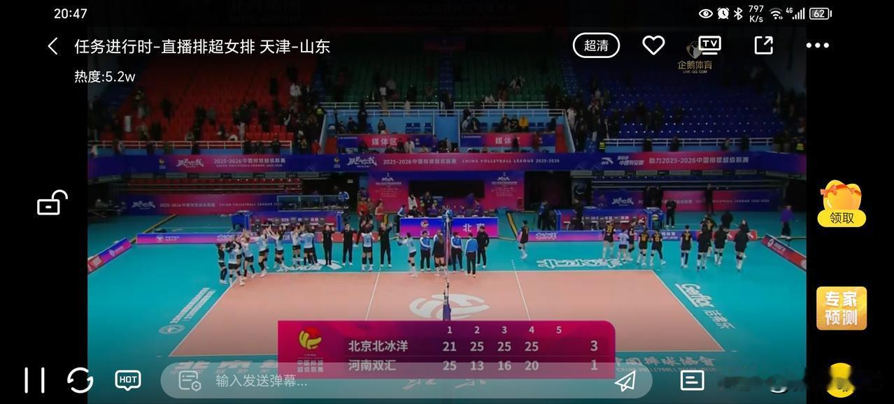 【北京女排逆转河南夺联赛三连胜】2025-2026中国女排超级联赛常规赛A级第九轮,北京北冰洋女排主场先输一局,接着连扳三局,大比分3-1(21-25 25-13 25-16 25-20)逆转战胜河南双汇女排,北京女排获得联赛三连胜,河南女排三连败。
