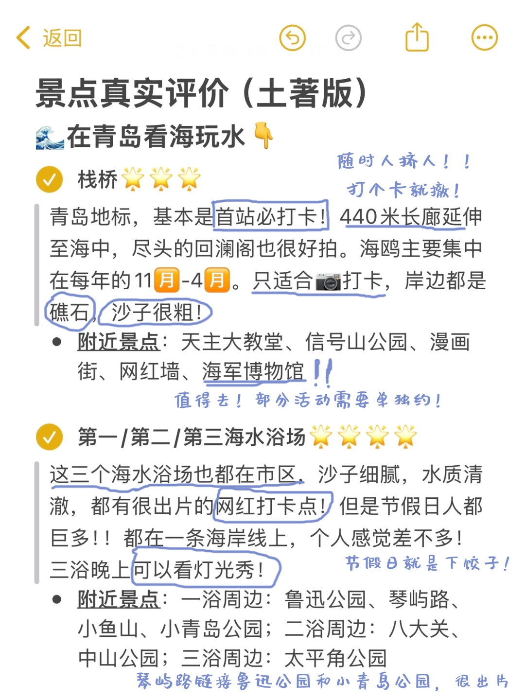 作为青岛土著,每次看到网上那些写得乱七八糟得攻略帖子,然后一大堆跟着踩雷的真的又气又心疼!作为土生土长青岛人,手码了一份简单的青岛旅游攻略📝希望大家在青岛玩得开心啊😃