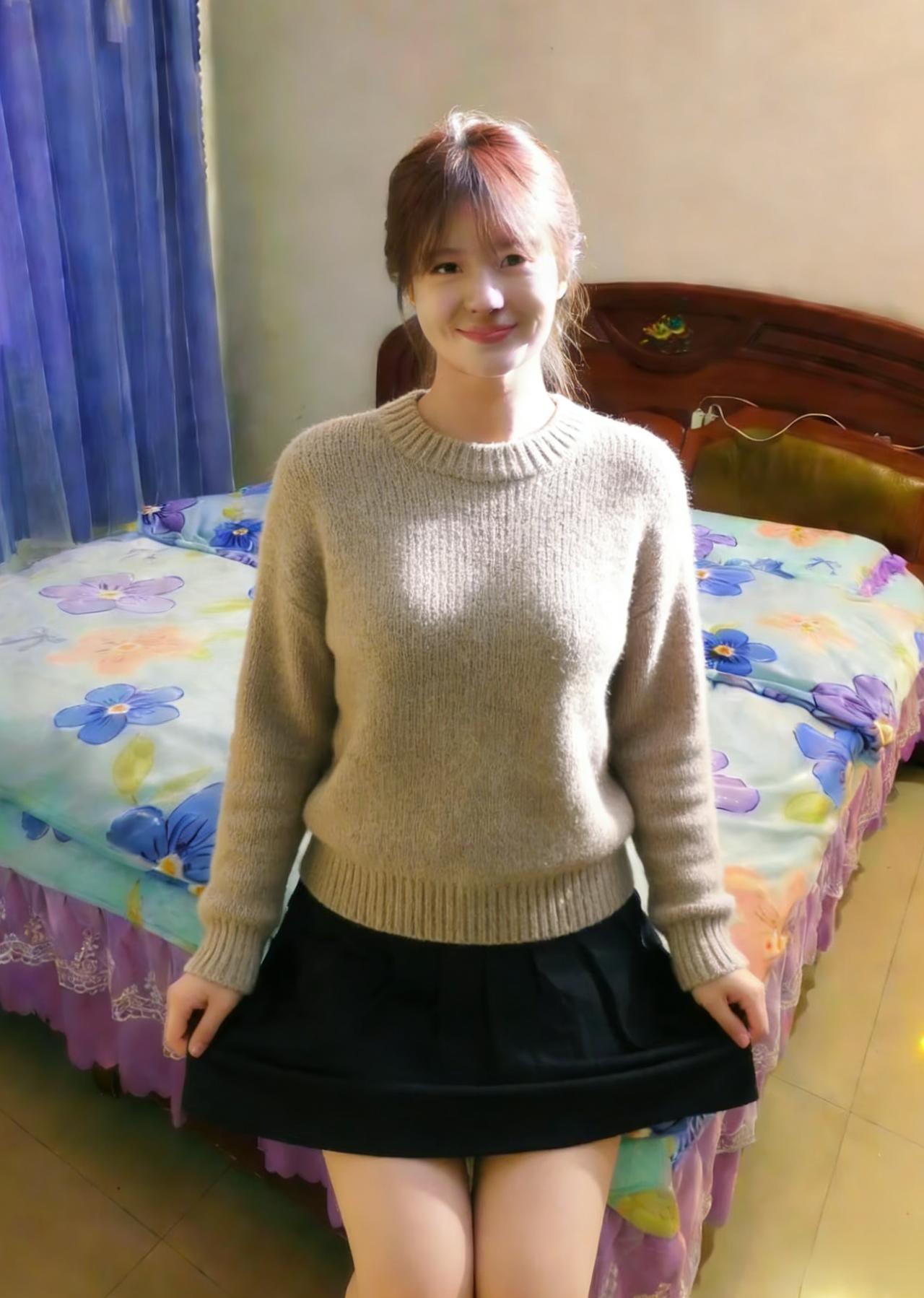 倩女淡淡妆,浅笑立门旁。 晴光穿户牖,风软动衣香。