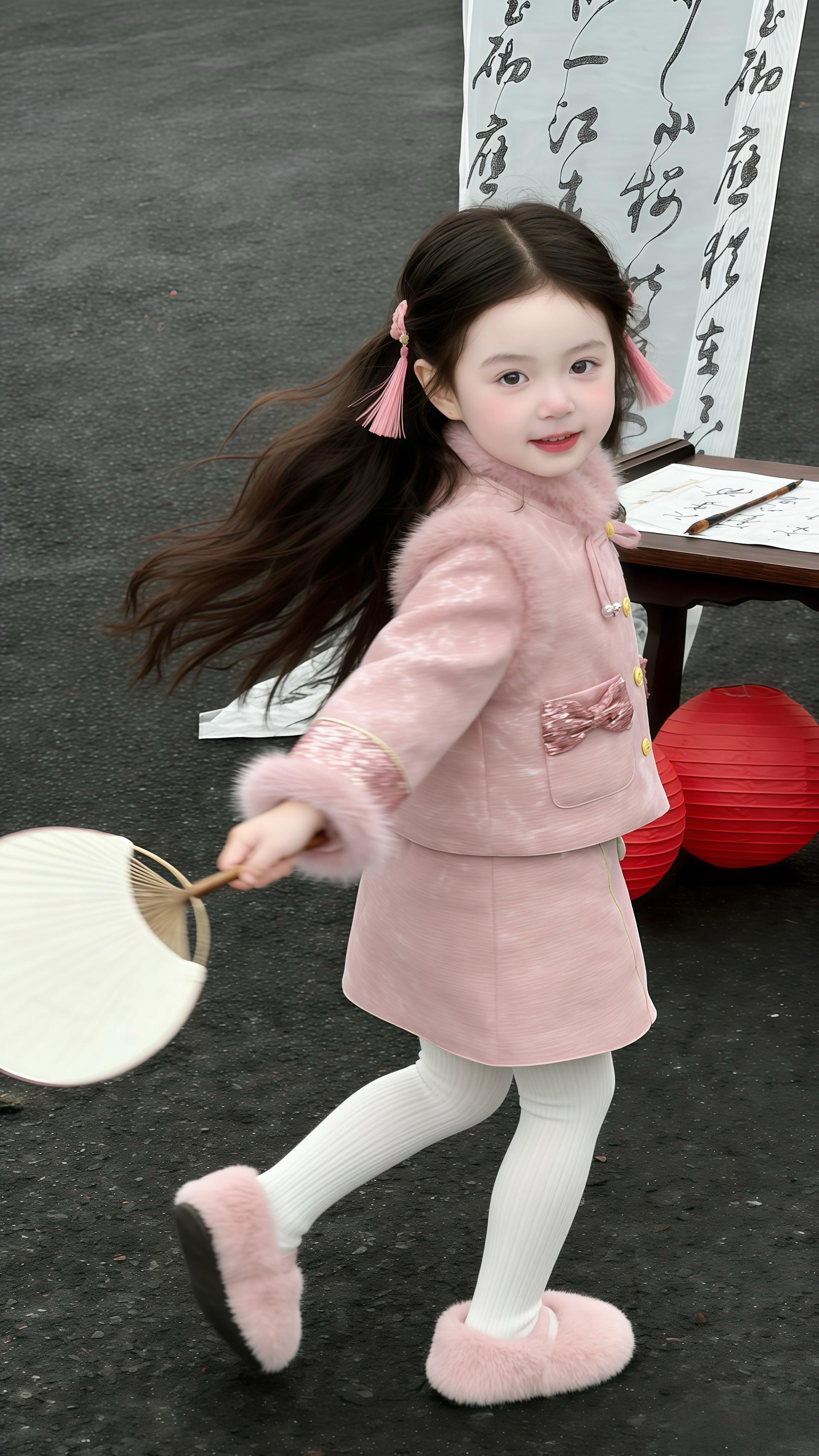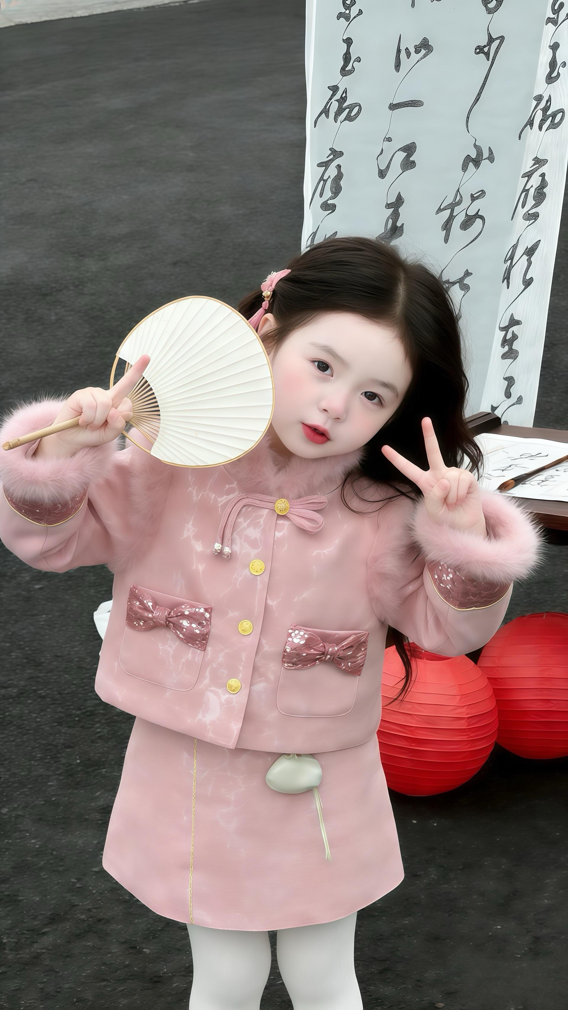新年氛围感直接拉满的粉色国风套装来啦!软乎乎的毛绒边超亲肤,亮面材质搭配蝴蝶结设计,甜妹感爆棚~搭配同色系毛绒鞋,跑跳都舒服,妥妥的国风小萌娃,过年穿回头率超高!