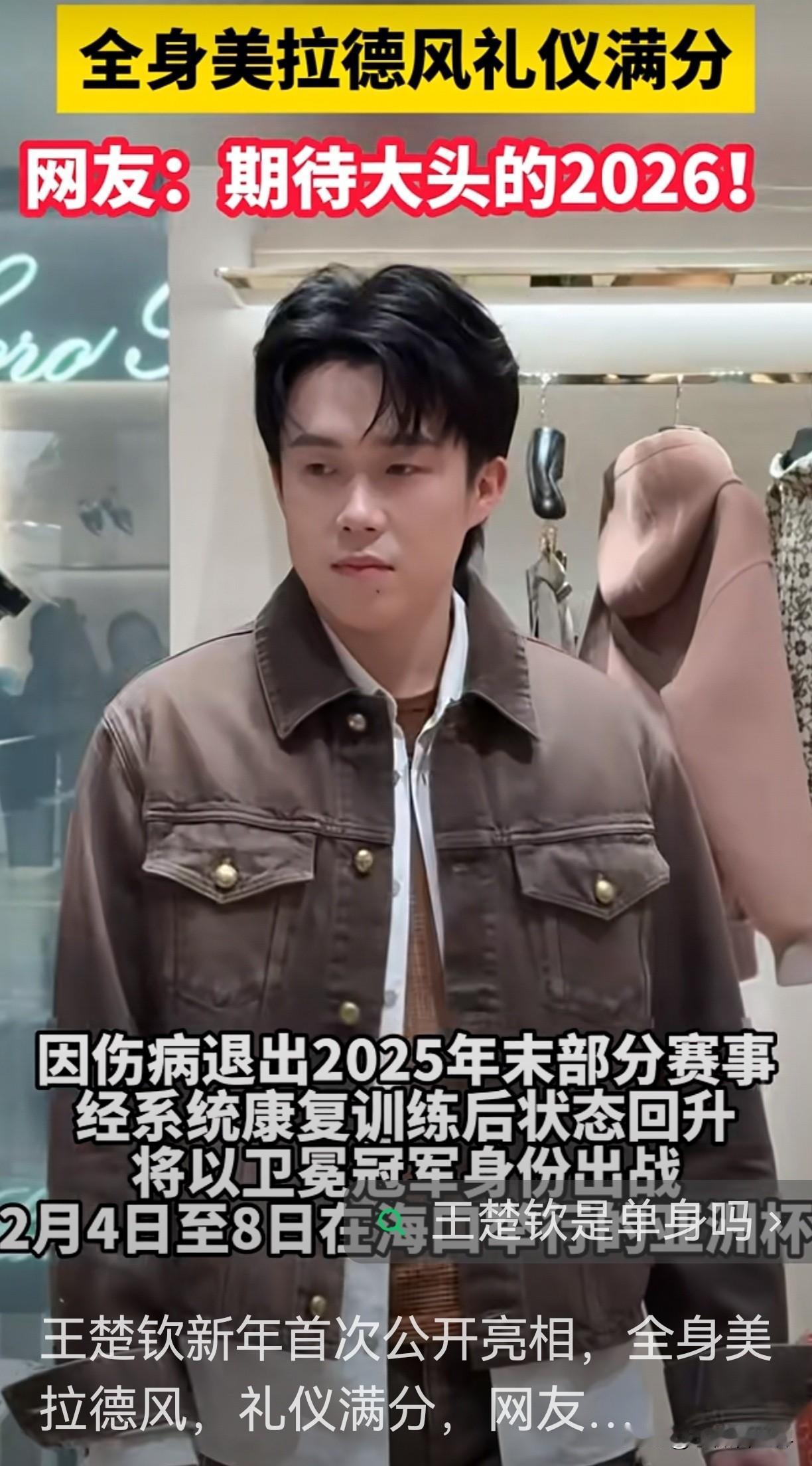 大清早就刷到一个新鲜出炉的帅气头哥,开心开心。 且说因伤没有出现在多哈冠军赛的王楚钦,1月13号新年首次公开亮相,全身美拉德风,太帅啦! 和球场上拼杀不同的美,王楚钦这身衣服帅出新高度。不得不说,我们头哥无论穿什么,给人的感觉就是又酷又帅。 回顾刚过去的2025年,王楚钦南征北战,全年共获15个冠军,其中包括国际12冠+国内3冠,男单年终世界第1,国际单打9站100%四强,胜率93.18%,全部44战中41胜。 凭借如此骄人成绩,王楚钦的商业版图也是让人惊喜。 作为中国乒乓球队首位获此头衔的现役运动员,同时集齐LV、Qeelin珠宝、奔驰三大顶级合约,覆盖服装、高珠、豪车领域,打破体育明星商业天花板。 一大把超级明星争奇斗艳,甚至不怕冻死。结果,压制他们光芒的那颗最璀璨的星却来自圈外—— 一个打乒乓球的大男孩,拎着一个和他气质毫不相配的人力车包包。王楚钦你太牛了吧? 又霸气又帅又怂又有羞涩感,这样的头哥,你们喜欢吗?