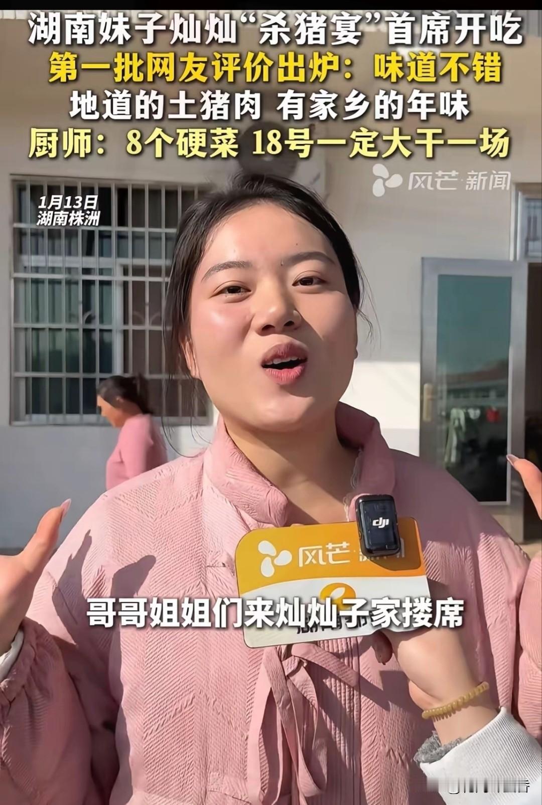 湖南灿灿硬刚 重庆呆呆 19头猪100桌流水席 备妥,湘渝刨猪宴之争谁更绝…? 重庆呆呆凭刨猪宴单日涨粉百万爆火后,湖南灿灿带着湘式倔强接棒出圈,一场跨省民俗盛宴彻底点燃全网热情!为了不负网友期待,灿灿不仅将原定刨猪宴提前筹备,更直接备下19头肥猪、100桌流水席,还成功说服父亲与伯伯全力支持,早早便杀了一头猪招待先到的粉丝,这份实在劲儿圈粉无数。 短短两天,灿灿账号涨粉15万,22个粉丝群全满,报名赴宴人数已过万,数十位网友提前抵达尝鲜,自媒体与官方纷纷跟进报道,乡村里网络信号拉满,妥妥接住了这泼天流量。她直言湘渝刨猪饭风味各有千秋,重庆是麻辣浓香裹着红油香,湖南则是鲜辣爽口,一口入魂便难忘,这份对家乡风味的自信戳中不少人。 更难得的是,灿灿一家做事妥帖,提前向村委会及相关部门报备,各项筹备万事俱备,就等网友赴这场年味之约。没有花哨剧本,全靠真诚与格局出圈,湘式烟火气撞上川渝热辣风,这场刨猪宴比拼既有民俗温度,又有乡土热忱。 全网都在热议这场跨省年味盛宴,有人为灿灿的实在点赞,也有人好奇两地刨猪饭的风味差异。你更偏爱鲜辣湘味还是麻辣川味?会奔赴这场热闹的乡村刨猪宴吗?欢迎评论区分享看法~