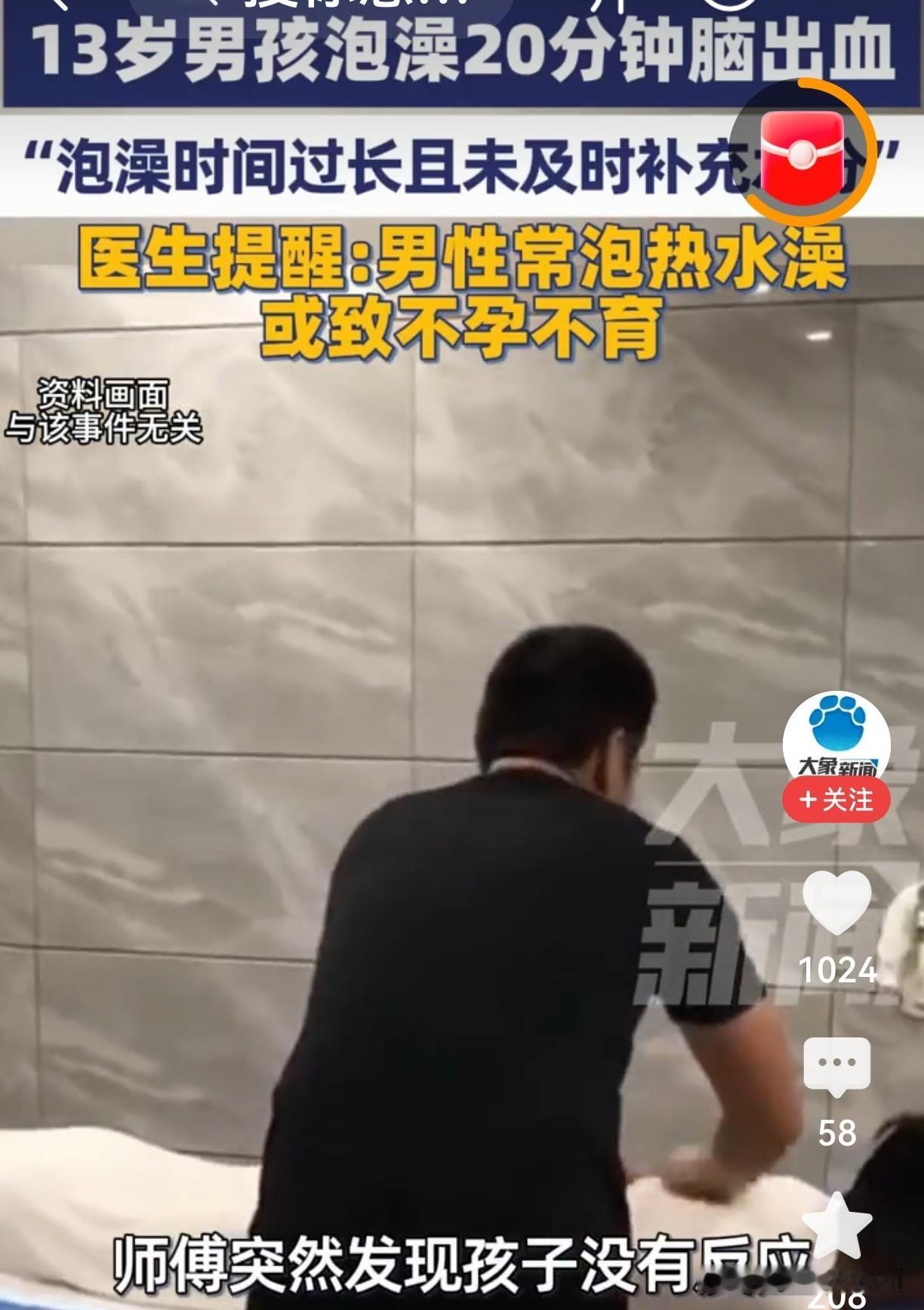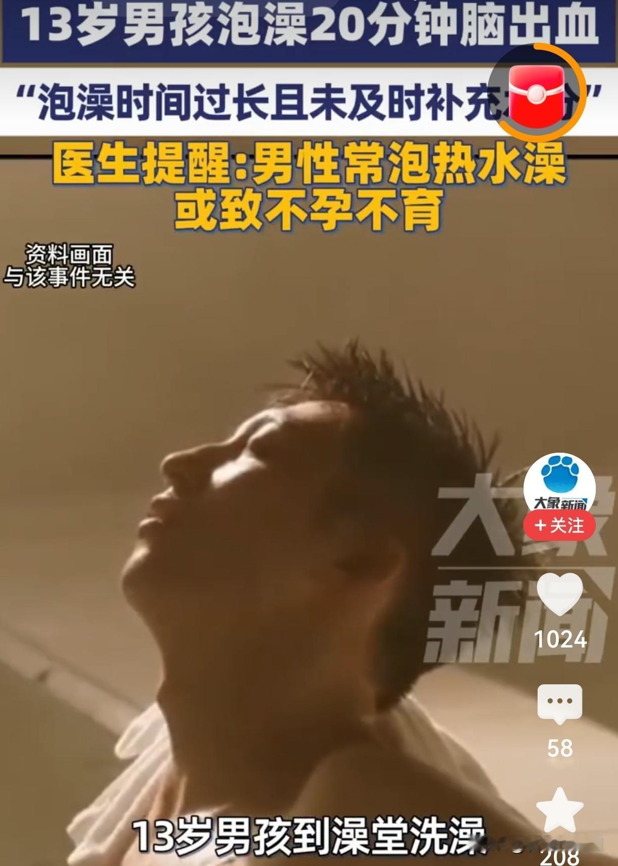 13岁男孩泡澡20分钟脑出血倒地!医生疾呼:这3个错误太多家长还在犯! 就泡个澡,差点要了命!你敢信吗?一个13岁的男孩,在家像平常一样泡澡,不到20分钟突然头痛呕吐,直接昏倒在地——送医确诊脑出血!很多家长都觉得泡澡是小事,但危险往往就藏在这些“日常”里!今天我必须把这事的真相掰开揉碎讲给你听…… 1. 事件还原:安静夜晚的惊魂一幕 孩子平时身体不错,那天写作业累了,妈妈让他泡个澡解乏。浴室门关着,水温调得偏高,热气蒸得镜子都模糊了。大概十五分钟左右,孩子喊了句“妈,我头疼”,接着就是一阵呕吐声和倒地闷响!送到医院时,孩子已经意识模糊,CT显示——脑出血。 2. 医生痛心分析:这三个“常识”其实害死人 我专门请教了急诊科医生,他说这类事故背后,往往躲着几个家长最容易忽略的坑: · 误区一:“泡久一点解乏”——超过15分钟,水温过热会让血管急速扩张,青少年血管发育未完全,极易引发颅内压力突变; · 误区二:“关紧门保温”——密闭空间缺氧,孩子一晕倒,连呼救都难被人发现; · 误区三:“孩子喊冷就加热水”——突然升温刺激,可能成为血管爆裂的最后一根稻草。 3. 安全红线:记住这三条,能保命 听完背后一凉是不是?别慌,记住这三条,孩子泡澡安心一大半: ① 掐表计时:别超15分钟,手机上闹钟最保险; ② 水温守住线:40℃是上限,手肘试一下,温温的就好; ③ 门留一条缝:保持通风,也方便随时观察动静。 说到底,咱们家长哪敢拿孩子安全冒险?可有时候,正是那些“以为对他好”的习惯,悄悄成了隐患。爱孩子,不止是让他吃暖穿暖,更是帮他把这些看不见的“雷”一颗颗排掉。 你有注意过孩子泡澡的这些细节吗? 评论区告诉我,你会今晚就检查家里的洗澡习惯吗? 转发出去,让更多家长躲开这个“隐形坑”!