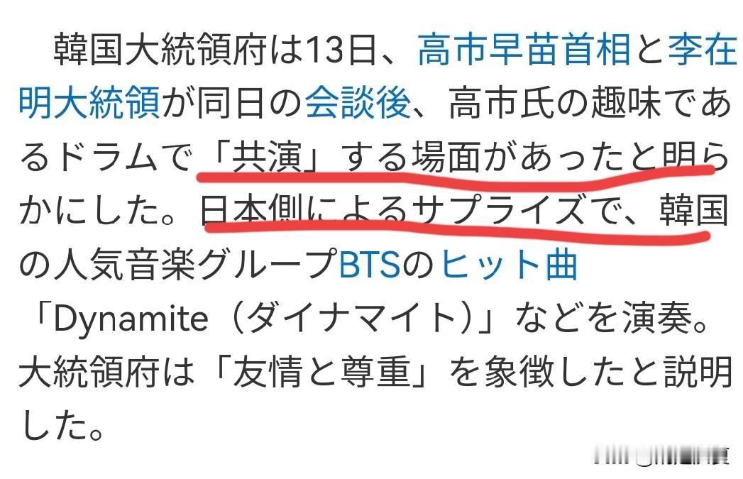 日本准备的惊喜!李在明和高市早苗打架子鼓! 1月13号,韩国总统李在明在奈良会见了日本首相高市早苗, 会谈结束后俩人还一起玩了把架子鼓。 这次合奏是日方偷偷准备的惊喜, 去年10月高市早苗访韩时说过自己爱打鼓,李在明当时就说想试试,没想到日方记在了心上。 俩人穿了印着各自国旗和名字的蓝色制服,一起敲了BTS的《Dynamite》和一首动画主题曲, 高市早苗本来就有打鼓功底,还现场指导了李在明,最后俩人手写签名交换了鼓棒。 李在明发照片时还自嘲有点生疏,但夸高市是专业人士, 说俩人虽然拍子有点不一样,但想合上节奏的心意是相通的,就像未来的日韩关系,会凭着这份心意一起打造。 不过这场热闹背后也有小微妙,高市早苗特意在家乡接待,还90度深鞠躬迎接,可李在明一开场就提了日韩没解开的历史伤痕. 而且俩人谈安全合作时,高市说美日韩要联手,李在明却没接话,反而强调韩中日该多沟通合作。 李在明和高市早苗打架子鼓 俏娃宝贝架子鼓儿童初学者玩具乐器爵士鼓男3-6岁宝宝敲打鼓家用