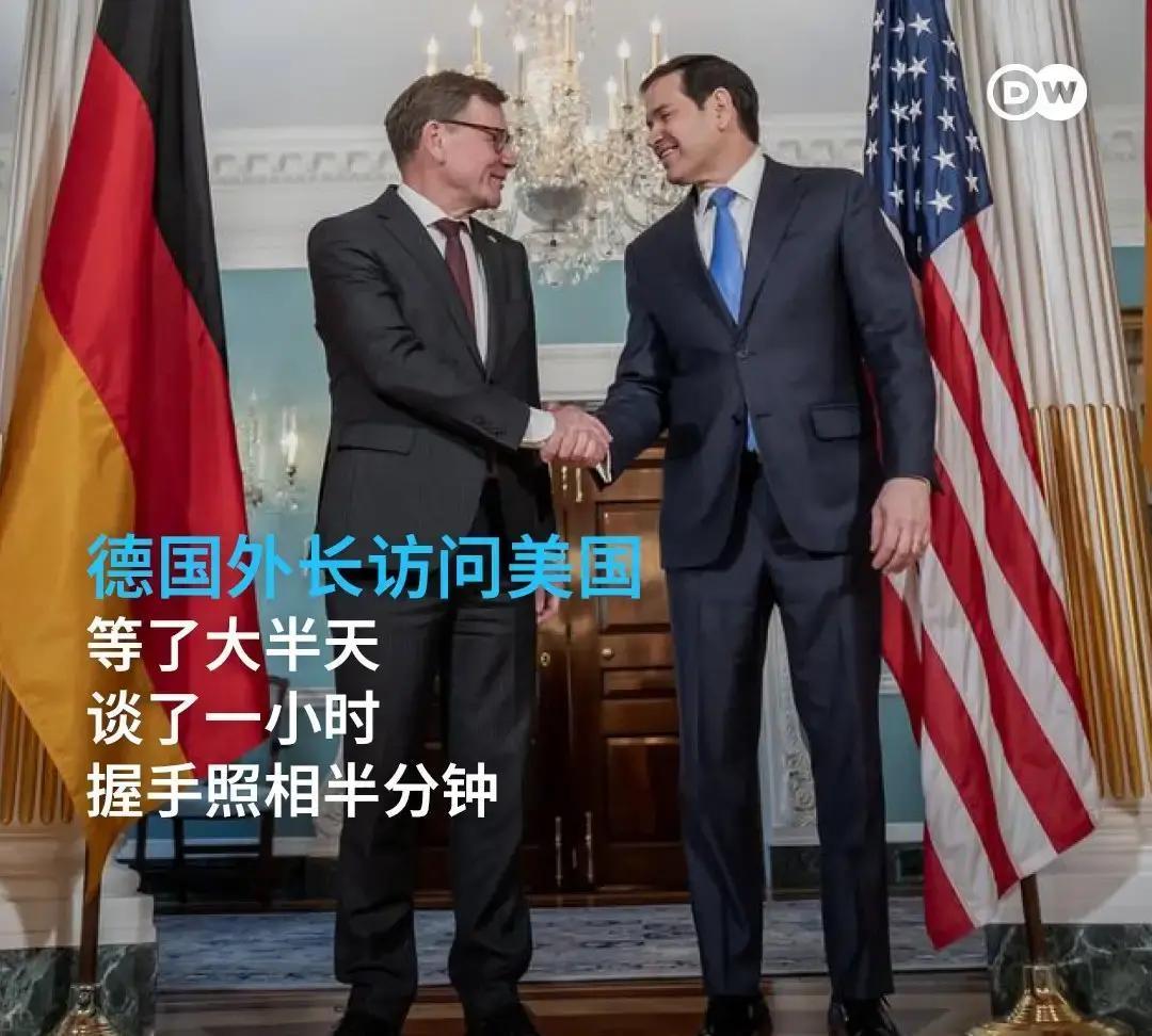 一趟访美行程,暴露的是距离感。 德国外长瓦德富尔在华盛顿等了大半天,正式会谈据说就一小时,合影也就“几十秒钟”,卢比奥转身走人,只剩他一个人对着记者灯光。 他仍按外交常规给出高评价,说“这是一次非常友好、深入的对话”,还重复老话:“我们需要彼此作为伙伴”,像是在提醒美国,欧洲的面子和安全都捆在这段关系上。 被追问美国会不会吞并格陵兰岛时,他赶紧降温:“没有迹象表明美国认真考虑”,话说得很稳,但等候时间和镜头画面,会让人怀疑这段跨大西洋关系的真实温度究竟有多高?你觉得这种“礼貌而疏远”的场面,对未来欧美合作意味着什么?