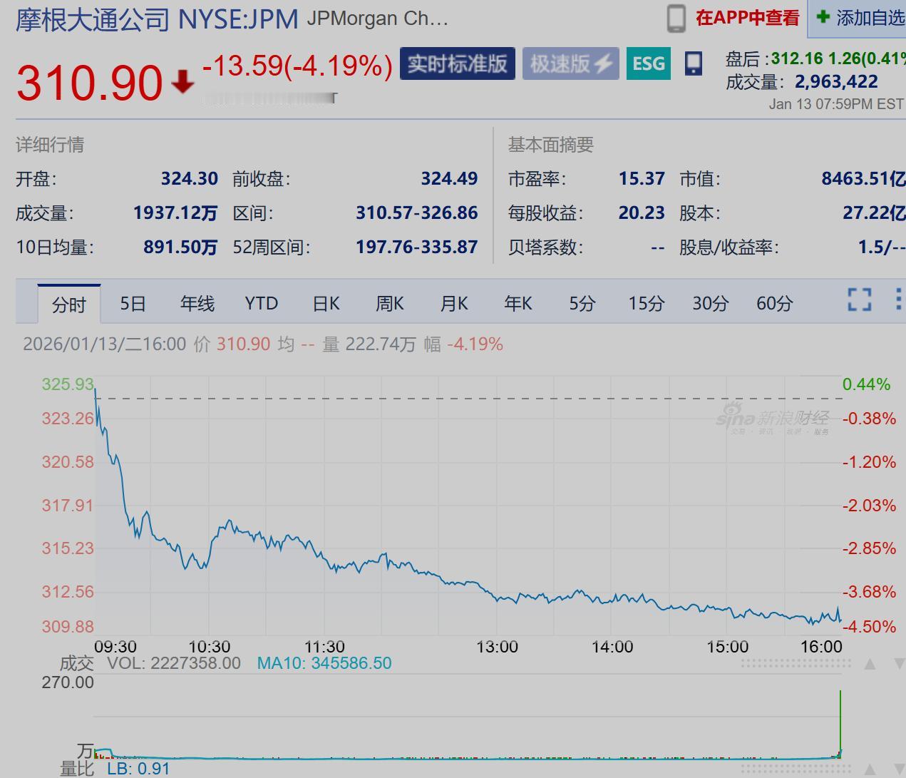 [美股]美股四季度财报正式打响!财经 金融股摩根大通率先公布业绩,数据显示:公司Q4调整后收入为468亿美元,但投行业务下滑反映出资本活动疲软,尤其是利率高企环境下债券与股票承销需求受抑。 戴蒙对特朗普信用卡利率上限政策的警告值得关注:若实施10%的利率上限,银行或通过收紧信贷标准、削减信用卡福利来对冲损失,最终可能导致次级借款人更难获得信贷,反加剧金融排斥。 这一争议凸显货币政策与普惠金融的矛盾——监管需在保护消费者与维持信贷市场流动性间寻找平衡。短期看,摩根大通凭借零售银行业务韧性仍具优势,但2024年其投行与消费信贷业务或持续面临政策不确定性冲击。 财报公布后,摩根大通股价大跌4%!
