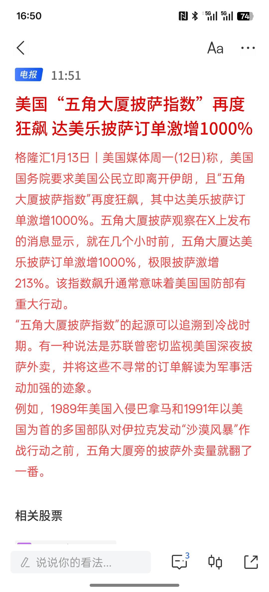 美国五角大楼周边的披萨店订单份额突然增加了1000%以上,看来美国又要搞什么大动作了,之前搞大动作的时候,周边的披萨订单大幅增加!你说最近对伊朗虎视眈眈,对墨西哥,对格陵兰岛同样是一个道理,因为对委内瑞拉之前发动袭击,抓捕总统的时候,周边的披萨份额也是突然暴增! 最近,美国与伊朗之间的紧张情绪也在加剧