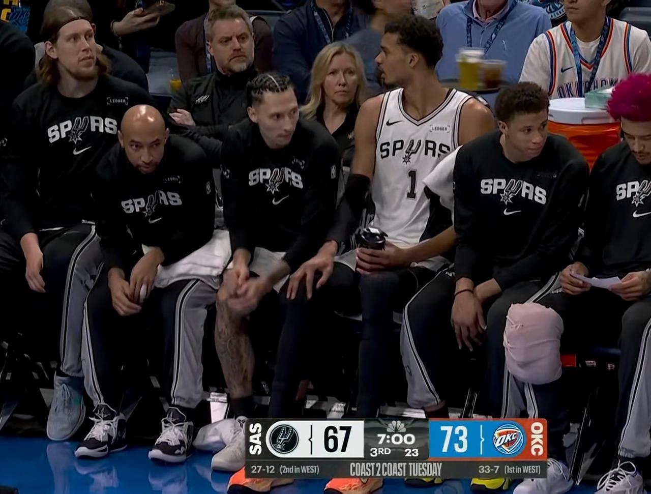 手拿保温杯,文班亚马来中国还学会了养生! 当文班亚马被马刺换下场休息时,工作人员就会立刻给文班亚马递上他的专属保温杯,这在NBA球员中非常罕见,上个手拿保温杯的球员还是维金斯,其他球员一般都是喝功能饮料补充体力。 文班亚马虽然很年轻,但是他的养生意识却非常好,他不仅经常练瑜伽,而且还来我国少林寺进行了修行,看来他在此期间还学会了泡养生茶。