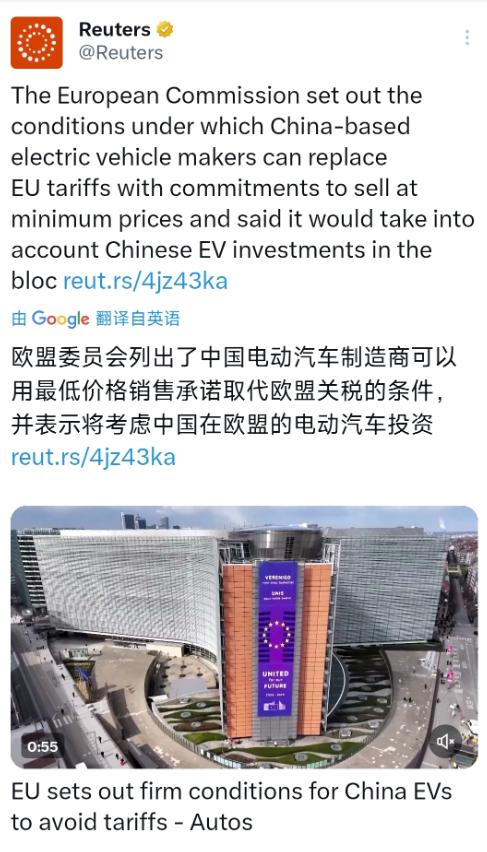 关于电车,终于跟欧洲谈妥了?1月13日路透社和各大媒体证实,欧盟委员会已经正式发布指导文件,确认将用“价格承诺”来取代之前那份让人头疼的惩罚性关税, 这事儿折腾了一年多,现在总算落地,对中国电车出口来说,算是个实打实的好消息, 先把事儿说清楚,之前欧洲觉得中国电车出口有补贴,搞不公平竞争,从2023年10月就启动了反补贴调查,到2024年10月更是敲定要加征高额关税,最高能到35.3%,再加上原本10%的基础关税,综合税率快到45%了。 说白了,真要是按这个税率收,不少中国车企要么得亏本卖车,要么就得退出欧洲市场,压力不是一般大。 现在谈妥之后的解决办法是“价格承诺”,简单说就是中国车企向欧盟承诺出口电动车的最低售价,只要不低于这个价格卖,就不用交那笔高额反补贴税。 欧盟也说了,会按照统一标准公平评估车企的申请,不搞区别对待,而且这个最低售价的设定有两种参考方式,要么是按到岸价加原本该收的关税幅度算,要么参考欧洲本土同类电动车的售价,包含合理利润在内。 这事儿为啥重要?欧洲可是全球高端电车的核心市场之一,消费者对电动化、智能化的接受度很高,本来就是中国车企重点拓展的方向。 就拿之前的数据来说,比亚迪在德国的销量去年一年就涨了7倍,2025年12月的新车注册量甚至超过了特斯拉两倍,要是因为关税丢了这个市场,对整个行业都是不小的损失。 从车企的角度看,这绝对是比征税好太多的结果,虽然售价被设了底线,可能会影响一部分低价车型的销量,但至少保住了欧洲市场的准入资格,更关键的是,不用交高额关税,利润就能留在自己手里,而不是交给欧盟政府。 有行业专家分析,之前因为关税要由欧洲进口商承担,不少进口商已经不敢轻易采购中国电车了,现在这个问题解决了,进口商的积极性肯定会提上来。 长远来看,这事儿也会倒逼中国电车行业转型,之前有些车企靠低价走量打开市场,现在价格被约束了,就只能往高端化、技术创新上发力。 比如多投入研发提升智能驾驶、电池性能这些核心竞争力,靠技术溢价赚钱,而不是单纯拼价格。 而且这也会推动更多车企加快在欧洲的本地化生产布局,比如比亚迪已经把欧洲总部落在了匈牙利,未来可能会有更多车企跟进,从“出口整车”变成“本地制造”,更稳妥地扎根欧洲市场。 当然,也不能太乐观,后续还要看各家车企的价格承诺申请能不能顺利通过,具体的最低售价怎么定才合理,而且欧洲内部还有不同声音,有人担心中国车企会钻空子变相降价。 但不管怎么说,能用谈判代替对抗,用“价格承诺”化解关税危机,已经是双方务实共赢的结果,对中国电车来说,这不是终点,而是在欧洲市场高质量发展的新起点。