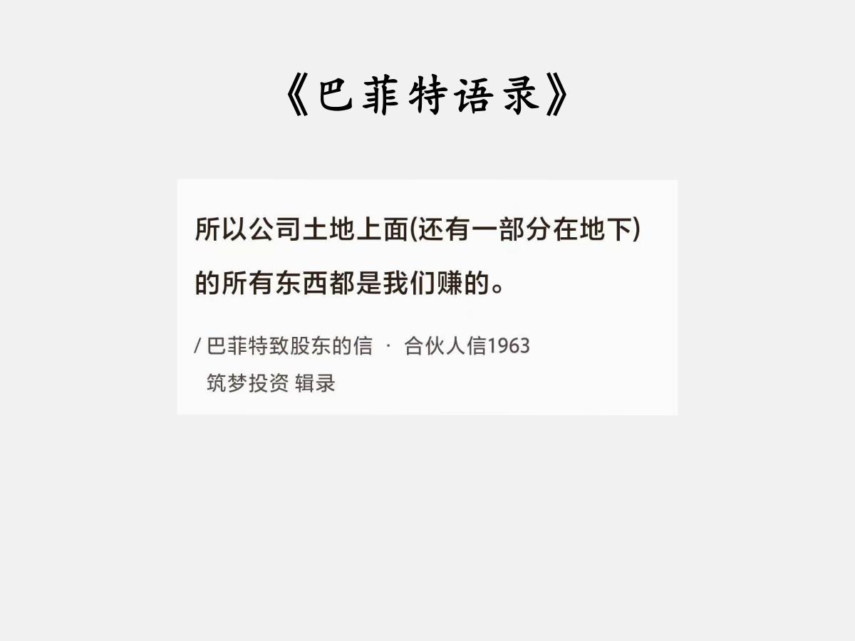 No.086巴菲特谈“买入即赚的投资” 巴菲特曰:“所以,公司土地上面(还有