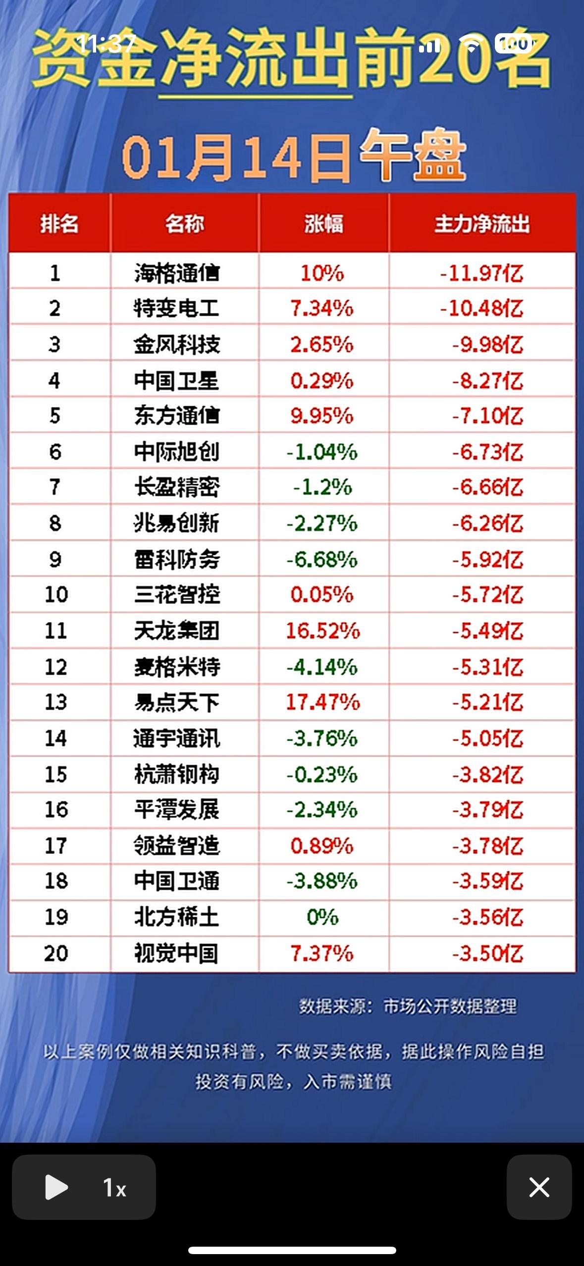 2026年1月14日午盘资金净流入前20名股票排行榜 "主力资金抢筹榜出炉!山子高科领涨20亿,科技股霸榜,东方财富、航天电子紧跟。投资需谨慎,数据仅供参考。"