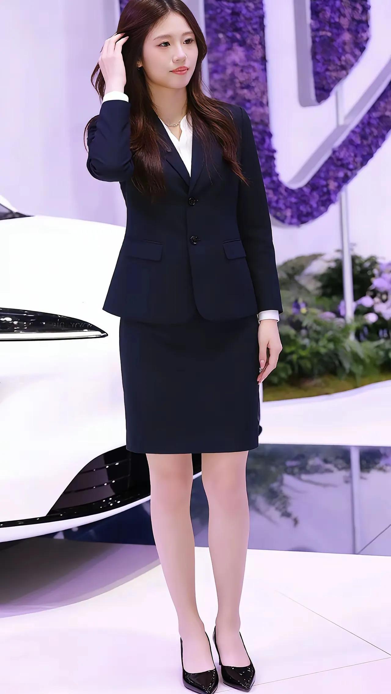 优雅职场风,黑色西装裙搭配高跟鞋,尽显干练气质!