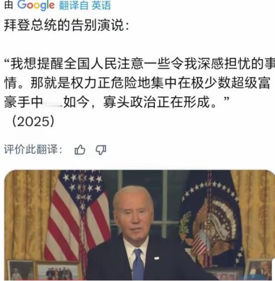 佩洛西将是美国甚至全世界的罪人!   佩洛西就是美国乃至全世界的罪人!这一切的根源,就是她一手策划并推动了逼迫拜登退选的操作,这步看似为民主党“谋出路”的棋,不仅彻底搅乱了美国的政治格局,更让整个世界的局势走向了愈发糟糕的境地,如果不是她的步步紧逼,今天的美国,今天的世界,也许会是全然不同的模样。   提起拜登,相信很多人都有不少调侃的话,你可以说他当了总统之后好像就擅长用签字笔签各种行政令。   大大小小的政策全靠这支笔推进,你也可以吐槽他年纪大了,出席公开活动总容易不小心摔倒,闹出过不少尴尬的笑话,你甚至可以实实在在地认为,就算他硬着头皮参加2024年的总统大选,凭着当时的民调支持率,也未必能赢过特朗普。   可就算有这么多的槽点和不被看好,拜登却是一个实打实极具远见的人,他在卸任前发表的告别演说里,那些发自内心的担忧,如今正一件件成为冰冷的现实,狠狠打了那些逼迫他退选的人的脸。   佩洛西作为民主党资深大佬,也是美国首位女性众议院议长,手握党内重要的话语权,还掌控着庞大的民主党捐赠网络,本应是维系党内团结的关键人物,可在2024年夏天的民主党内部,她却成了逼迫拜登退选的核心推手。   当时拜登的支持率确实有所下滑,首场电视辩论的表现也被外界诟病,但他的竞选团队始终在推进竞选计划,拜登本人也多次表态会坚持参选,可佩洛西却率先跳出来释放不安的信号。   她先是在7月的采访里含糊其辞,称留给拜登做参选决定的时间不多了,看似把决定权交给拜登,实则就是公开的逼宫,之后的三周里,她更是从未停止过“煽风点火”。   每当要求拜登退选的呼声稍有平息,她就会私下和数十名民主党普通议员、自己的旧部接触,不断放大大家对拜登胜选的担忧,甚至有民主党议员直言,7月中旬那场声势浩大的拜登退选呼声,全是佩洛西一手促成的。   她从没有公开喊过让拜登退选,因为她知道这样会让拜登变得强硬,反而用这种“天鹅绒手套”的隐晦方式,让民主党内部的压力层层传导,就连民主党内的人都坦言,拜登最终决定退选,佩洛西要负50%的责任。   在佩洛西的操作下,民主党大金主纷纷暂停捐款,党内一众大佬也跟着明里暗里施压,多重压力之下,拜登最终在2024年7月21日无奈宣布退出总统大选,这份遗憾,全是佩洛西的私心造成的。   拜登退选后,按部就班发表了自己的告别演说,在白宫椭圆形办公室的这场讲话里,他没有抱怨佩洛西的逼迫,也没有指责党内的背叛,只是平静地说出了自己对美国和世界的诸多担忧,那些话在当时还被不少人当成是“老糊涂的杞人忧天”,可如今再回头看,每一句都精准命中了现实。   拜登在演说里直言,美国正在形成拥有极端财富、权力和影响力的寡头政治,财富和权力集中在极少数超级富豪手里,这正在威胁着美国的民主和民众的基本权利,他还担忧社交媒体上的虚假信息泛滥成灾。   真相被谎言掩盖,科技工业复合体的崛起会带来未知的危险,人工智能如果不做好保障措施,会成为影响国家和人类发展的新威胁,甚至还含蓄地提醒继任者,气候变化是真实存在的问题,绝不能视而不见。   其实在任期间,拜登就一直在为破解这些问题努力,他推动改革税法想要让亿万富翁缴纳应缴的税款,主张清除竞选捐款背后的“黑金”,还试图对最高法院大法官实施任期限制,这些举措都是为了化解他看到的危机,只可惜他还没来得及将这些规划落地,就被佩洛西逼得提前离场,留下了无尽的遗憾。   而佩洛西的这一逼宫操作,带来的连锁反应不仅席卷了美国,更波及了整个世界。拜登退选后,民主党原本的竞选计划被彻底推翻,即便拜登表态支持副总统哈里斯接棒,可哈里斯本身存在诸多短板,不仅在移民问题上乏善可陈,还难以凝聚起整个民主党的力量,不少民主党议员始终持观望态度,这就给了特朗普可乘之机,让他毫无悬念地重返白宫,开启了所谓的“特朗普2.0”时代。   特朗普上台后,完全无视拜登的警告,把美国的内部局势搅得一团糟,他公然用刑事调查的方式威胁美联储主席鲍威尔,试图操控美国央行的独立运行,让美国的金融体系陷入危机,国内的两党恶斗也愈演愈烈,街头的抗议和对立事件层出不穷,高通胀、高物价的问题始终没有解决,普通民众的生活愈发艰难,拜登担忧的寡头政治和权力滥用,在特朗普的操作下变得更加严重。