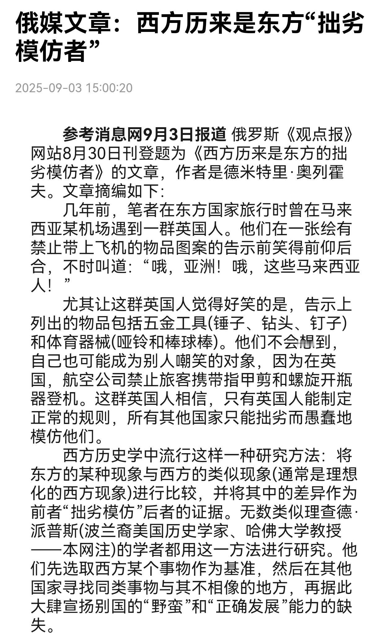 2015年9月3日俄罗斯媒体就写过一篇文章:西方历来是东方“拙劣模仿者”! 西史辩伪和正本清源一旦开始,很多真相都会逐步浮现,被销毁和被破坏的东西,多多少少都会留下痕迹,就像西方的历史,只要有心人去查看,总会找到各种各样的漏洞,有的人就跳脚站出来说在胡扯,然后他们又找不到任何的可靠的事实来反驳,显然这些人的目的是值得深究的。 事实摆出来,都不用辩论,人民群众的眼睛是雪亮的,自己就能辨别真伪!