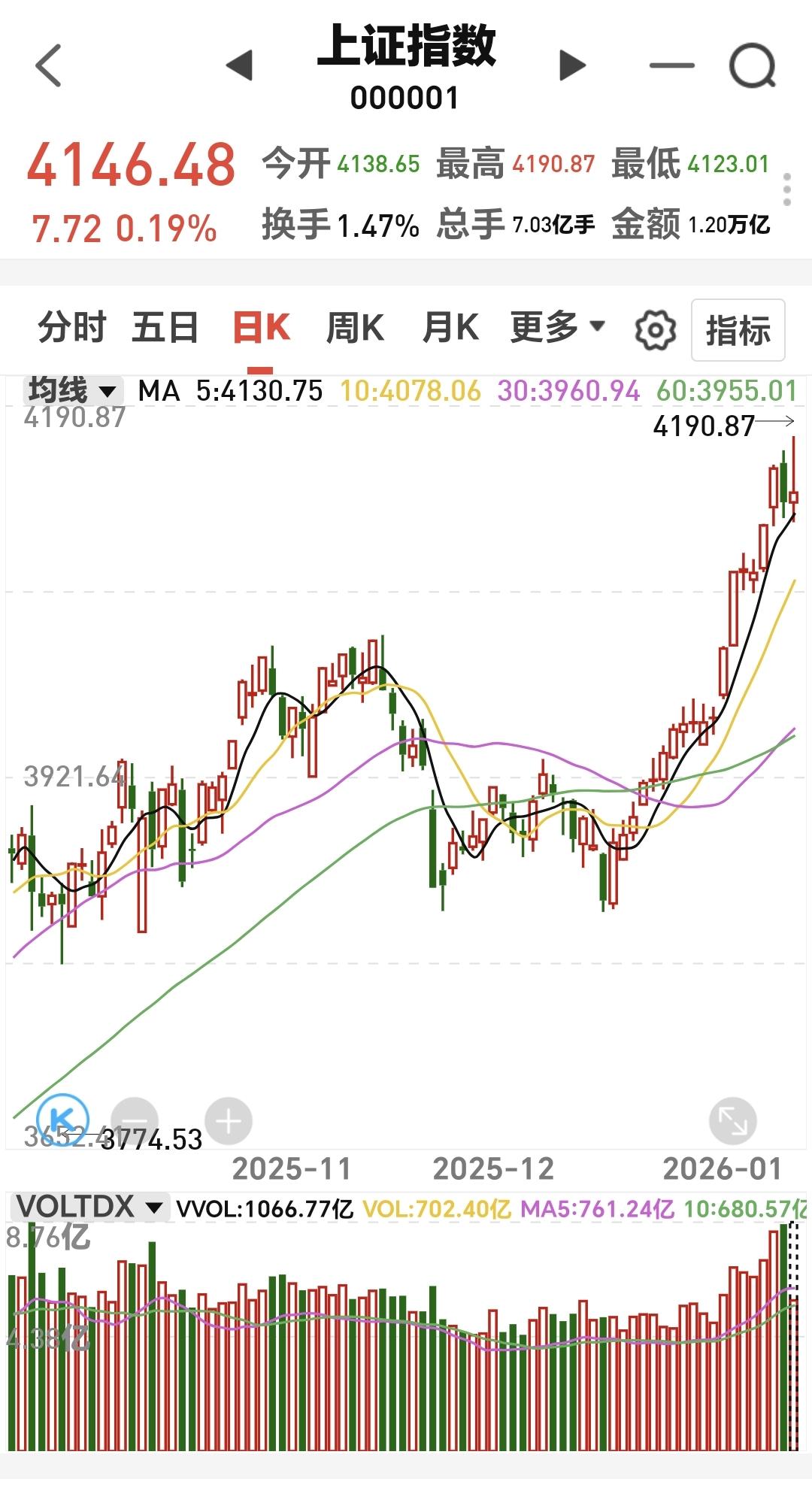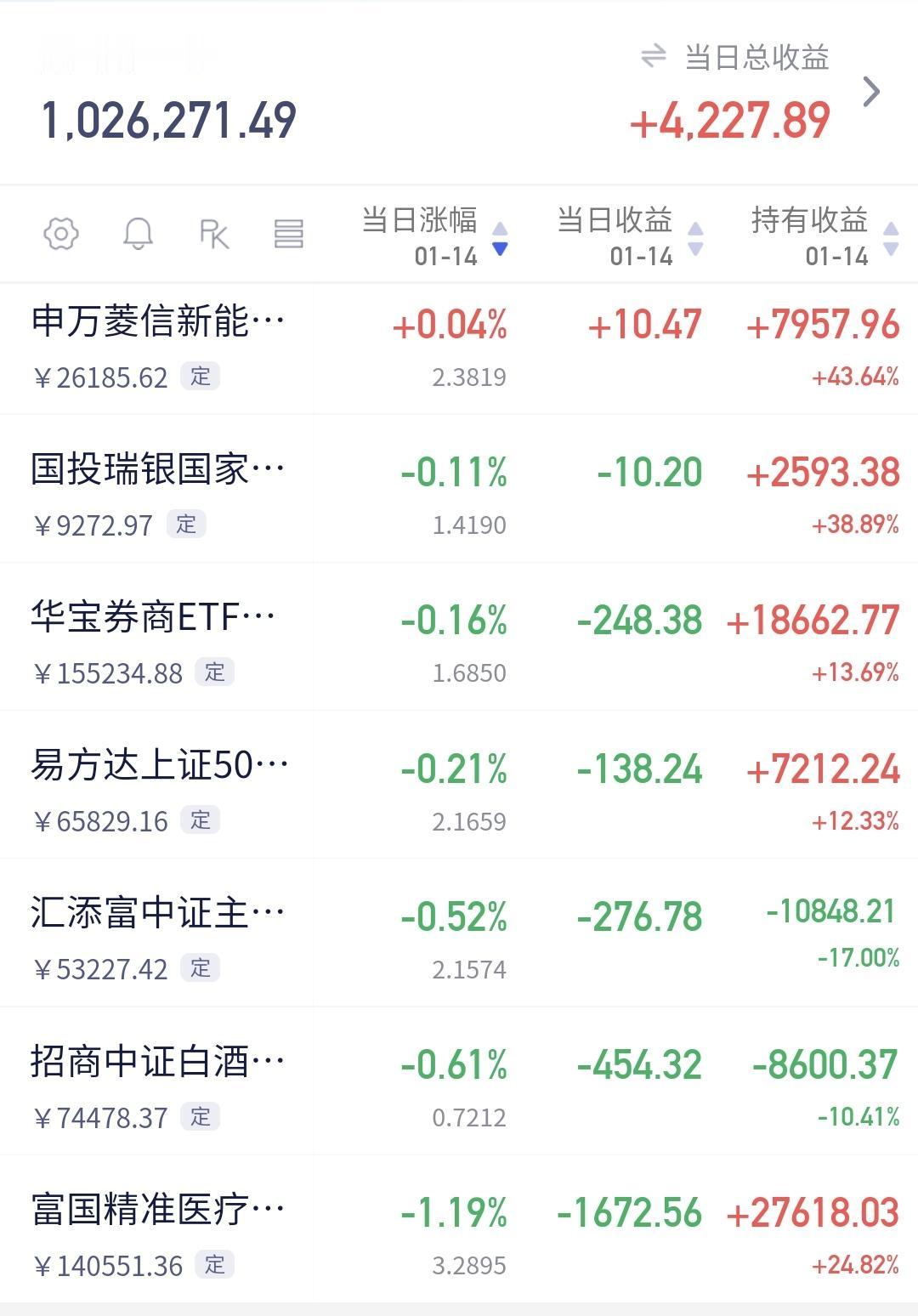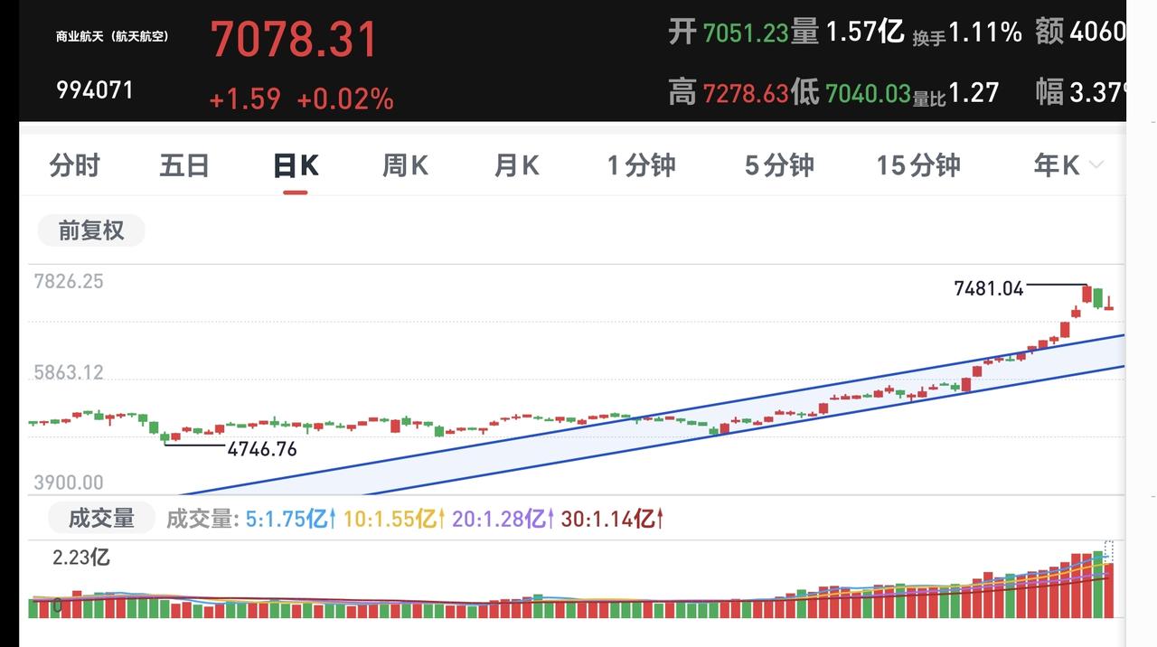 基金:市场指数大幅度跳水,我们应该怎么办 下午开盘以后大幅度跳水,现在是在小幅度回升当中,上证指数一度翻绿,现在又有翻红,创业板指上涨了1.07%,盘中点位3357点,上证指数上涨了0.07%,盘中点位4141点。 整个股票市场,上涨2643家,下跌2669家,涨停95家,跌停12家,上涨家数少于下跌家数。 持有的基金中,盘中估值上涨幅度最大的三个板块是:AI应用板块,芯片半导体板块,可控核聚变板块,估值下跌幅度最大的三个板块是:医疗板块,白酒板块,大消费板块,估值整体上涨了4223元。 整个基金市场,上涨10415家,下跌5683家,上涨幅度超过5%的17家,没有下跌幅度超过5%的基金。 图9是今天基金的上涨排行榜,图10是今天基金的下跌排行榜,图11是ETF上涨幅度排行榜,图12是今天基金的加仓榜,图13是今天基金的减仓榜。 1:现在黄色线还是在蓝色线上方,但两条线之间的敞口不是特别大,后面继续观察两条线位置会不会有变化。 2:现在两市累计成交29813亿,相比于昨天放量了6%,这说明下午跳水过程中是大幅度放量,跳水过程中有大资金在出逃。 3:现在盘中五天线位置是4130点,现在盘中点位4146点,是在五天线之上,收盘之前观察能不能收在五天线之上,只要能够收在五天线之上,就不要过分慌张。 4:今天下午的跳水是消息面的影响,是有关方面为了给市场降温,是有关方面为了市场不能像这样一直大幅度上涨,我估计,这一次的措施并不能改变市场的上涨趋势,后面还会有继续的措施,当有再次有措施出台的时候,我们需要高度警惕,当后面再一次出现措施的时候,我们就需要全身而退,因为用措施喊话不会立竿见影,因为很多大资金已经深入其中,不可能一下子逃出来,但有几次的措施出来以后,他们的资金出逃也就差不多了。 5:我们来看一下下面的截图14,这是主力资金进出板块的情况,主力资金净流入最多的三个板块是:计算机板块,大数据板块,数字货币板块,主力资金净流出最多的三个板块是:机器人板块,esg板块,新能源板块。 6:我们来看一下下面的截图15,这是商业航天板块日K线图,从图中可以看出,我画了两条倾斜向上的斜线,这是商业航天板块日线级别上涨通道,前段时间上涨突破了这个上涨通道的上轨,然后就是进入了加速的走势,短线持有的人可以继续持有,除非跌破这个上涨通道的下轨,才可以考虑要不要止盈出来观望。 我们来看一下下面的截图16,这是商业航天板块周K线图,从图中可以看出,我画了两条倾斜向上的斜线,这是商业航天板块周线级别上涨通道,上周的上涨突破了这个上涨通道的上轨,也就是说商业航天板块周线级别有可能进入了加速走势,长线持有的人可以继续持有,除非跌破这个上涨通道的下轨,才可以考虑要不要止盈出来观望。 7:我们来看一下下面的截图17,这是5G通信板块日K线图,从图中可以看出,我画了两条倾斜向上的斜线,这是5G通信板块日线级别上涨通道,现在的位置处于这个上涨通道内,也就是说,5G通信板块日线级别处于上涨趋势中,持有的人可以继续持有,除非跌破这个上涨通道的下轨,才可以考虑要不要止盈出来观望。 我们来看一下下面的截图18,这是5G通信板块周K线图,从图中可以看出,我画了两条倾斜向上的斜线,这是5G通信板块周线级别上涨通道,现在的位置处于这个上涨通道中,也就是说,5G通信板块周线级别处于上涨趋势中,5G通信板块大方向向上,长线持有的人可以继续持有,除非跌破这个上涨通道的下轨,才可以考虑要不要止盈出来观望。 有关方面已经不允许市场像这样大幅度持续上涨,你想一想,哪一次有关方面想拦住市场上涨的时候没有能够拦住,如果你相信有关方面有这样的能力,你就需要谨慎对待,我本人是在谨慎对待当中,我一直是在找机会进行再一次止盈。 今天究竟应该怎么办?我会在评论区留言 我每天都会分享我的观点,我的观点只代表我个人的看法,不能作为你操作的依据,据此操作后果自负。