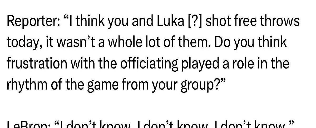 这才是老江湖啊 记者话筒直接怼脸上了!就差明说“裁判是不是搞你们了?” 湖人刚输给雄鹿,老詹心情肯定不好。全场他和东契奇加起来才14次罚球,这节奏能舒服吗? 记者这“铲子”递得太明显,就等你跳坑。只要抱怨一句,立马就是头条,联盟几万美金的罚单也就跟着来了。 结果你看老詹,先是沉默,然后咧嘴一笑,那笑容太有内容了…… 连着三句:“我不知道,我不知道,我真的不知道。” 一句话没多说,钱保住了,面子也保住了。这脑子,真不是盖的。