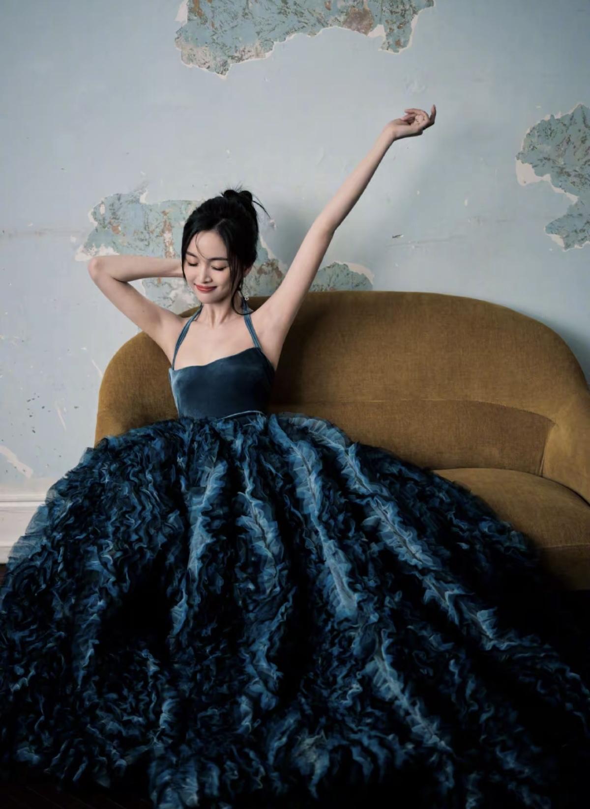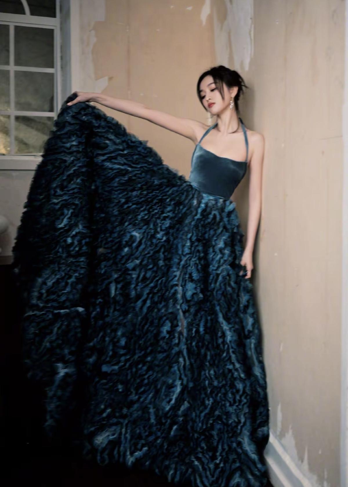 吴宣仪一袭墨蓝挂脖礼裙,在斑驳的旧巷里自成风景,复古又矜贵[赞]丝绒上半身搭配层叠裙摆,李沁把优雅与神秘感穿在了身上[给力]李沁的墨蓝礼裙造型,在光影交错间,美成了一幅复古油画[玫瑰]娱乐明星