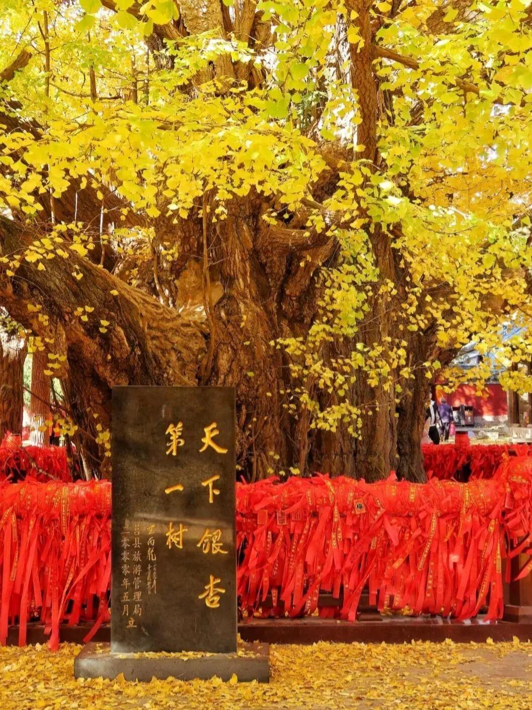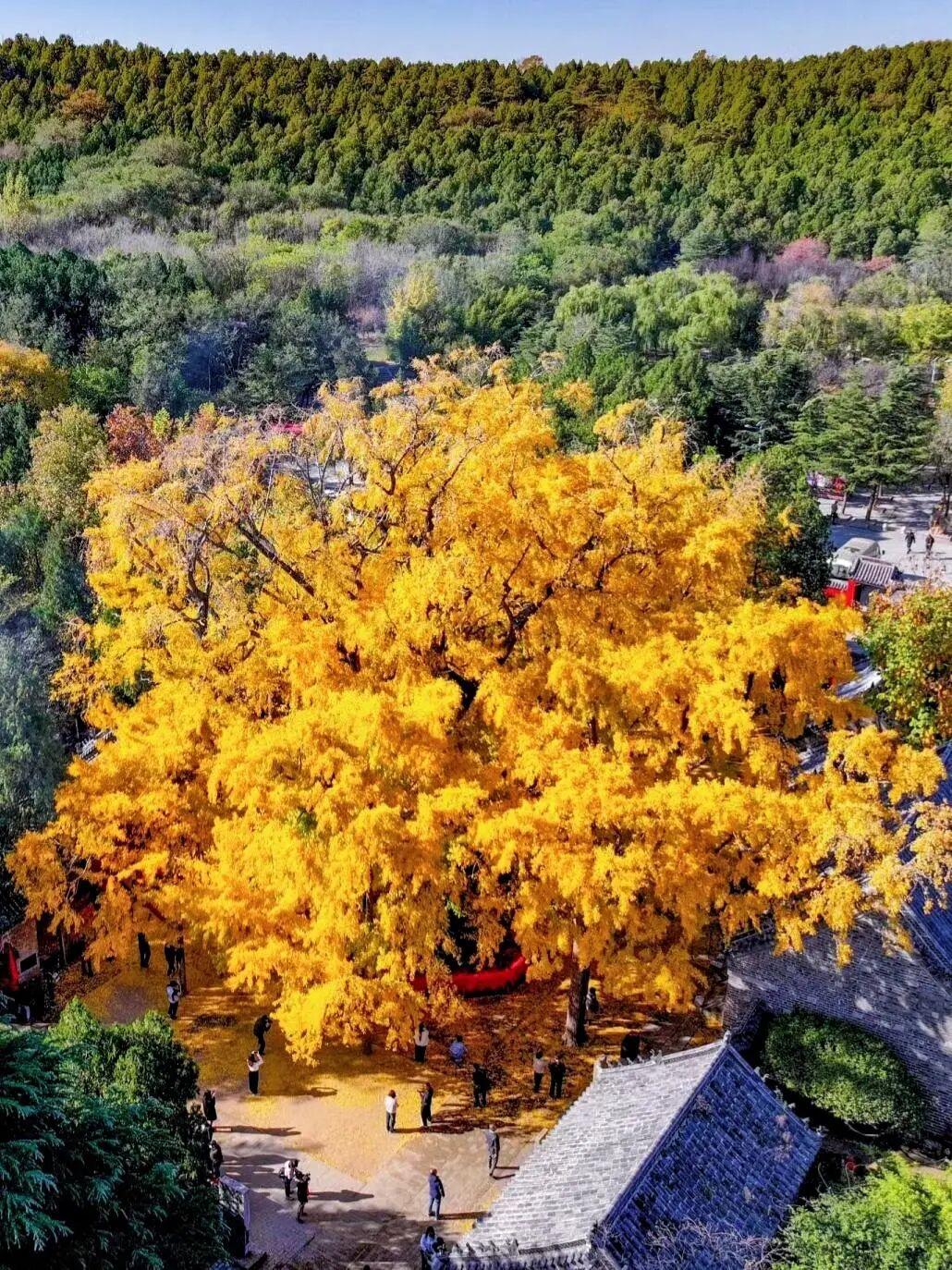 山东莒县浮来山定林寺内有一株被誉为“天下银杏第一树”的古树,这株银杏树的树龄已近4000年,追溯至商代,是名副其实的植物“活化石”。它高约26.7米,主干周粗15.7米,巨大的树冠遮荫面积近900平方米,需数人合力才能环抱一周。每到深秋时节,满树叶片渐变金黄,风起时金叶如蝶蹁跹飘落,在地面铺就松软的“鎏金地毯”,与定林寺的青砖黛瓦、飞檐斗拱相映成景,随手一拍都是自带时光滤镜的画卷。 凭借悠久的树龄与良好的生长状态,这株银杏树以“树龄最长的圆铃银杏树”获评“大世界基尼斯之最”,成功列入《世界吉尼斯大全》。此外,它还曾入选全国“10株最美古银杏”,更荣登中国邮政《古树名木》特种邮票,成为山东唯一上榜的古银杏树,诸多荣誉加持更显其珍贵价值。