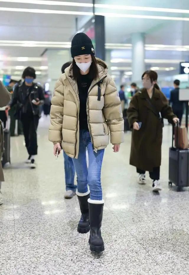 网友A:李小冉这也太凡尔赛了吧,49岁了穿羽绒服配牛仔裤,漫画腿直接抢镜。 网