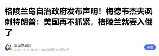 梅德韦杰夫太可怕了,他帮特朗普出了个“损招”,把欧洲吓得够呛。据RT的报道,梅德韦杰夫在1月12日发表言论,他提到了“公投”两个字,引起一片哗然。 这段时间特朗普盯着格陵兰岛眼馋得不行,1月份这十天里,他连续四次放话要拿下这座世界最大的岛屿,态度一次比一次硬。 1月4号说美国绝对需要格陵兰岛,8号又强调不只想享有防务权利,而是要拥有整个岛屿,9号干脆直言考虑买下来,到了11号更放狠话,就算影响和北约盟友的关系也不在乎,那架势就是不择手段也要得手。 美国惦记格陵兰岛可不是一时头脑发热,早在1867年就想从丹麦手里买,1946年杜鲁门政府拿1亿美元黄金出价,结果被丹麦拒绝,到现在又动不动就威胁动武。 说到底就是盯上了这地方的战略位置和丰富资源,它不仅是北极航道的关键关口,还藏着31种欧盟认定的关键矿产,稀土和油气储量都特别惊人,对美国掌控北极、垄断高端制造资源来说,太重要了。 就在美国对着盟友丹麦步步紧逼,欧洲各国敢怒不敢言的时候,梅德韦杰夫站出来添了一把火。他在社交平台发文催特朗普抓紧时间,还抛了个没证实的消息,说过几天格陵兰岛那5.5万居民可能要搞公投,要是投票同意加入俄罗斯,美国之前所有的盘算就全泡汤了。 这句话最直接的影响就是把欧洲架在了火上烤。欧洲各国本来就被特朗普的单边主义搞得头疼,丹麦作为格陵兰岛的宗主国,早被美国的威胁施压弄得没了面子。 丹麦首相之前在新年讲话里就暗批美国,说它用威胁和居高临下的语气对待盟友,丹麦国防情报局更是第一次把美国列为潜在安全威胁。欧盟各国也都站出来支持丹麦,法国总统马克龙、欧盟委员会主席冯德莱恩都明确说,要尊重丹麦的主权和领土完整。 可欧洲的防务又离不开美国,北约更是欧洲安全的重要依靠,特朗普一句“不在乎影响北约”,早就让欧洲提心吊胆了。梅德韦杰夫这话一出来,等于给欧洲出了个难题,要是美国真为了抢岛不惜破坏北约,欧洲是跟着美国冒险,还是保住自己的利益? 北约秘书长吕特赶紧表态,说要扩大北约在北极的存在,德国总理默茨也呼吁在北约框架内找解决办法,说白了都是想给双方找台阶下。 可这恰恰暴露了欧洲的被动,既怕美国翻脸不认人,又怕被美国绑上战车,梅德韦杰夫这一句玩笑,直接把欧美之间的裂痕摆到了明面上。 这句看似随意的话,其实是一步一举多得的好棋,远不止离间欧美这么简单。 它精准敲打了美国的霸权逻辑,把美国靠强取豪夺侵占盟友领土的本质,彻底摆到了全世界面前。美国总标榜自己遵循“基于规则的国际秩序”,可到了格陵兰岛这事上,动不动就威胁用军事手段,甚至想挑唆格陵兰岛独立,好趁机控制它,完全是丛林法则那一套。 梅德韦杰夫用“公投入俄”的玩笑反过来将了美国一军,意思很明显,你能靠强权惦记别人的地盘,别人自然也有选择的权利,你要是动作慢了,到嘴的鸭子也可能飞了。这番话把美国的双标和掠夺本性扒得干干净净,让美国在国际上丢尽了脸。 同时这也是俄罗斯在北极战略上的一次强硬表态。北极是俄罗斯的核心利益区,给俄罗斯贡献了15%的GDP和75%的天然气出口。这些年美国一个劲加大在北极的军事投入,就是想挤压俄罗斯的生存空间,而格陵兰岛正是美国布局北极的关键棋子。 梅德韦杰夫这玩笑看着无心,实则传递了明确信号,俄罗斯不会眼睁睁看着美国独占北极利益,只要美国敢在北极搞扩张,俄罗斯有的是办法反击。 哪怕只是口头造势,也能让美国推进格陵兰岛计划时多几分顾虑。这也是在提醒欧洲,俄罗斯在北极的存在感不容忽视,欧洲不能一味跟着美国的节奏走。 更有意思的是,这话还精准摸透了格陵兰岛的真实态度。民调显示,85%的格陵兰岛民众都反对成为美国的一部分,格陵兰岛自治政府也明确表态,绝不接受美国接管,防务问题必须在北约框架内解决。 梅德韦杰夫提公投,看着荒唐,却刚好契合了格陵兰岛民众对外部势力介入的警惕。 这等于告诉美国,就算你用尽各种手段,当地民众不买账,你最后还是竹篮打水一场空。这无疑给美国的野心泼了一盆冷水,也让欧洲看清,美国的计划本身就站不住脚,跟着美国冒险根本得不偿失。 说到底,梅德韦杰夫这招根本算不上损招,他只是看透了欧美关系的脆弱,也抓住了美国霸权的软肋。欧美之间本来就因为特朗普的“美国优先”政策裂痕加深,欧洲依赖美国的防务保护,却又不满美国的单边压迫。 美国想牺牲盟友利益满足自己的野心,可又离不开盟友体系的支撑。梅德韦杰夫这一句玩笑,就像一根针,戳破了欧美盟友关系的伪装,让双方的矛盾和各自的算计暴露无遗。欧洲越是紧张应对,越能看出这话的杀伤力;美国越是避而不谈,越说明被戳中了痛处。