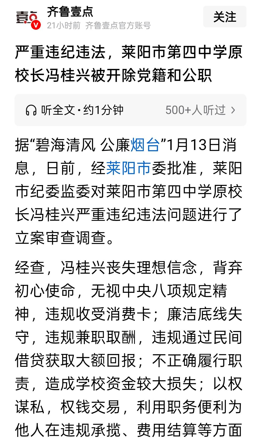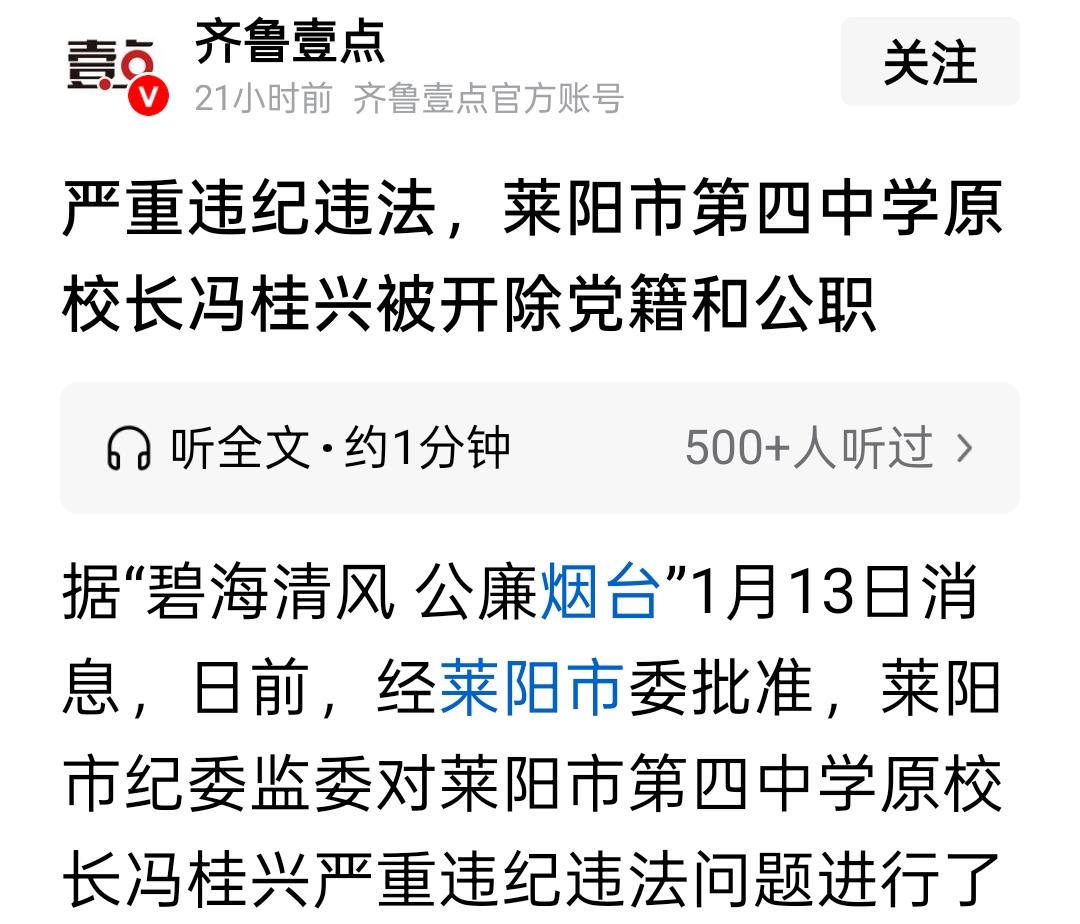 莱阳这校长也太厉害了,拿着学校的钱去放贷! 现在好了,直接被双开了 据官方媒体报道,原莱阳四中校长冯桂英被开除党籍和公职。 最近被处理的校长可不少,但是这个校长被处理,还是跟金钱有关系,他甚至拿着学校里的钱去放贷! 第一,看新闻报道的内容,首先是他违规接收消费卡 别人送给他消费卡,定然是有求于他。 别人求一个校长能办什么事儿呢?要么就是孩子入学的问题,要么就是校内工程的问题,要么就是学校老师获取荣誉的问题。 这个细节直接被写到了新闻通报当中,看来这消费卡的数额应该不低。 第二,说他违规兼职取酬,违规通过民间借贷获取大额回报 现在银行的利率确实很低,但民间有一些人因为征信的问题无法从银行贷到款项,所以经常借助于民间借贷机构 看通报的内容,这个校长有可能私自挪用学校的钱去放贷了,然后获取大量的回报。 这也充分说明,在一个学校当中,校长手里的权力太大了。 第三,就是涉及到校园工程的问题,校长利用职务便利,给其他人提供方便。 校园里的工程其实是很挣钱的,尤其在涉及到餐厅小卖部等一些明显带有消费意味的消费机构,面对的需求量很大的客户群体,是能够获得很高收益的 所以这也成为了一个香饽饽,而校长利用职务之变可以从中获取高额回报。 这校长,昔日风光无限,今日锒铛入狱!