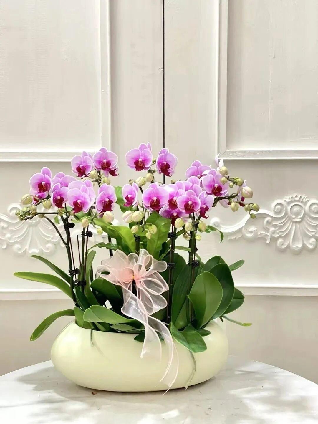 蝴蝶兰之美——宝贝 一种特别的蝴蝶兰品种,它叫 “宝贝” 蝴蝶兰,也有人叫它 “第二名”。 “宝贝” 蝴蝶兰是中小型花,花瓣是可爱的粉色,唇瓣是鲜艳的红色,看起来小巧又活泼。它的颜色搭配非常自然,就像一幅美丽的画。而且呀,它的花期超长,能开好久好久,就像一群舍不得离开的小蝴蝶,一直留在我们家里。 “宝贝” 蝴蝶兰很适合放在家里的窗台或者书桌旁,每天看到它,心情都会变好。它不像有些花那么娇气,比较容易照顾。我们只要给它适量的水,让它晒晒太阳,它就能长得很好。