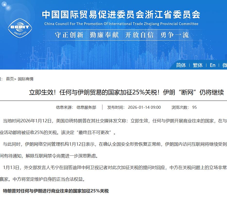 美国总统特朗普用他标志性的大写字母发布声明:从2月1日起,任何与伊朗有商业往来的国家,其商品进入美国市场时都将被加征25%关税,这项决定“最终且不可更改”。全球金融市场瞬间乱了套,原油价格应声跳涨,东京、法兰克福的股市指数剧烈波动。 这份被称为“二级关税”的政策,表面上只是贸易措施,实际上却藏着针对伊朗及其合作伙伴的复合型施压战略。传统上美国对伊朗实施“二级制裁”,是直接惩罚与伊朗做生意的外国企业。 如今这套新玩法更巧妙:不罚企业,而是对企业所在国的所有输美商品加征高额关税。按照《华尔街日报》的分析,这相当于把贸易伙伴整体拖下水。25%的税率绝非小数目,汽车、能源、科技这些全球化程度高的行业首当其冲。 德国宝马的慕尼黑总部、日本丰田的爱知县工厂、韩国三星的芯片生产线,都可能因为供应链上某个环节与伊朗有关联而遭受池鱼之殃。 白宫内部为此争论了数周。副总统万斯等人倾向于传统外交手段,担心激进措施会撕裂与盟友的关系。但特朗普的“美国优先”思维再次占了上风。据《纽约时报》透露,匿名官员解释这是条“中间路线”——既能展现对伊朗的强硬姿态,又能避免直接军事冲突带来的不可控风险。 财政部长贝森特领导的团队测算过,这种关税措施对伊朗经济的绞杀效果可能比单纯制裁更显著,因为它迫使所有国家在“与伊朗做生意”和“进入美国市场”之间二选一。时机选择也颇有深意:2026年美国中期选举临近,伊朗国内经济困境加剧,此时出手既能讨好国内选民,又能最大化施压效果。 德黑兰的反应既强硬又克制。外长阿拉格齐发表声明,表示愿意对话但拒绝接受不平等条件。伊朗的实际红线很明确——核计划自主权、地区影响力、现有制裁必须解除。就在声明发布后几小时,德黑兰街头出现了大规模集会,安全部门逮捕了多名被指控“勾结外部势力”的商界人士。 国防部长哈塔米宣布军队进入高度戒备状态,并暗示导弹技术比2025年“更加成熟”。在叙利亚和黎巴嫩的伊朗系武装也同步提升了警戒级别。 全球反应迅速分化。卡塔尔发出警告,担忧紧张局势会影响能源通道安全;土耳其呼吁各方冷静,试图在美伊之间维持微妙平衡。克里姆林宫发言人佩斯科夫直言反对“任何形式的长臂管辖”,延续了俄罗斯一贯立场。 中国外交部发言人重申反对单边制裁,主张通过对话解决问题,这种做法破坏了国际经贸规则。布鲁塞尔方面,欧盟委员会主席米歇尔暗示可能采取反制措施,但德国总理和法国总统的表态更为谨慎。原本停滞的伊核协议谈判,前景变得更加黯淡。 这场危机能否软着陆,取决于三个关键变量。首先是伊朗国内稳定性:经济困境已引发民众不满,政府能拿出什么手段提振信心?权力结构内部是否存在裂缝?其次是特朗普的决策模式:这位“商人总统”习惯用成本收益分析看问题,什么情况会让他从经济施压转向军事打击? 精准打击伊朗核设施或军事基地的可能性不能排除。最后是多边机制的应对能力:2025年中俄伊在北京举行的安全会谈已建立合作框架,金砖国家、上合组织等平台能否形成有效合力,对冲美国的单边压力? 本质上这是一场没有硝烟的战争。特朗普抛出的不是军事挑战书,而是经济战宣言。伊朗则打出外交、军事、宣传的组合拳。全球化时代的经济相互依存,此刻变成了战略博弈的武器。 与过去美伊危机不同,经济工具被摆在了舞台中央。这与特朗普第一任期对伊朗政策一脉相承,但手段更为精巧。2026年的国际环境已深刻变化:多极化趋势更加明显,能源转型正在重塑地缘格局,传统盟友关系也不再铁板一块。 未来可能呈现三种局面。最理想的是双方各退一步,关税成为谈判筹码,最终达成新协议。最糟糕的是误判频发,经济摩擦升级为有限军事冲突,波斯湾上空响起爆炸声。 最大可能性则是陷入长期消耗:关税持续生效,伊朗经济缓慢失血,代理人竞争在叙利亚、也门等地加剧,形成“不战不和”的僵持状态。 美国对与伊朗有商业往来的国家加征25%关税,中方回应 2026-01-14 00:00·澎湃新闻
